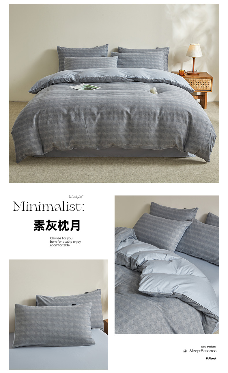 当前位置: 91家纺网 > 商品网购 > 床品套件 > 四件套 > 全棉普通四件套 > 乐家毛巾被(工厂自产自销) 2026新款40s全棉纯棉色织提花四件套 素槿清风