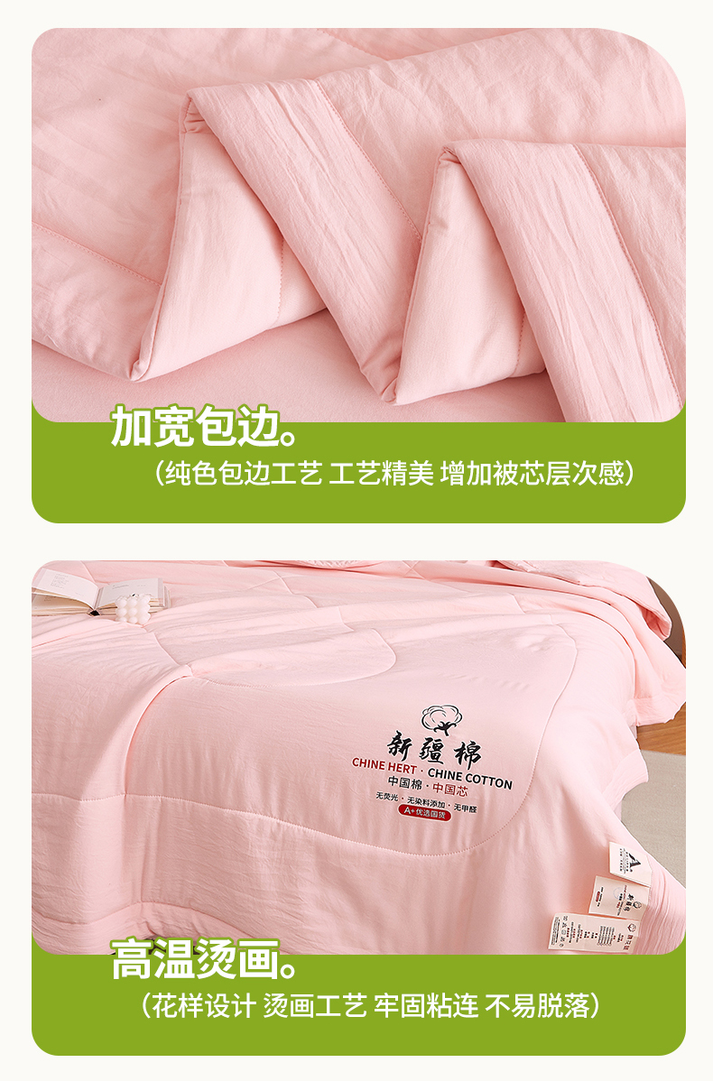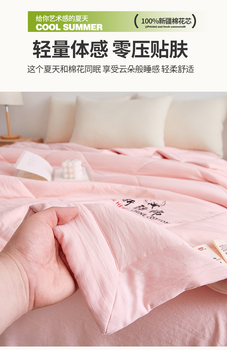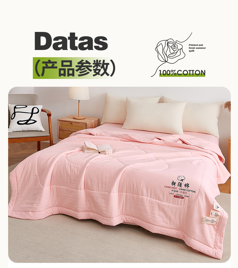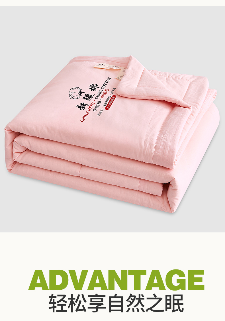 商品名称:尊妙被业 2026新款水洗棉棉花夏被100%新疆棉花被被子被芯填充包检测 蔷薇粉