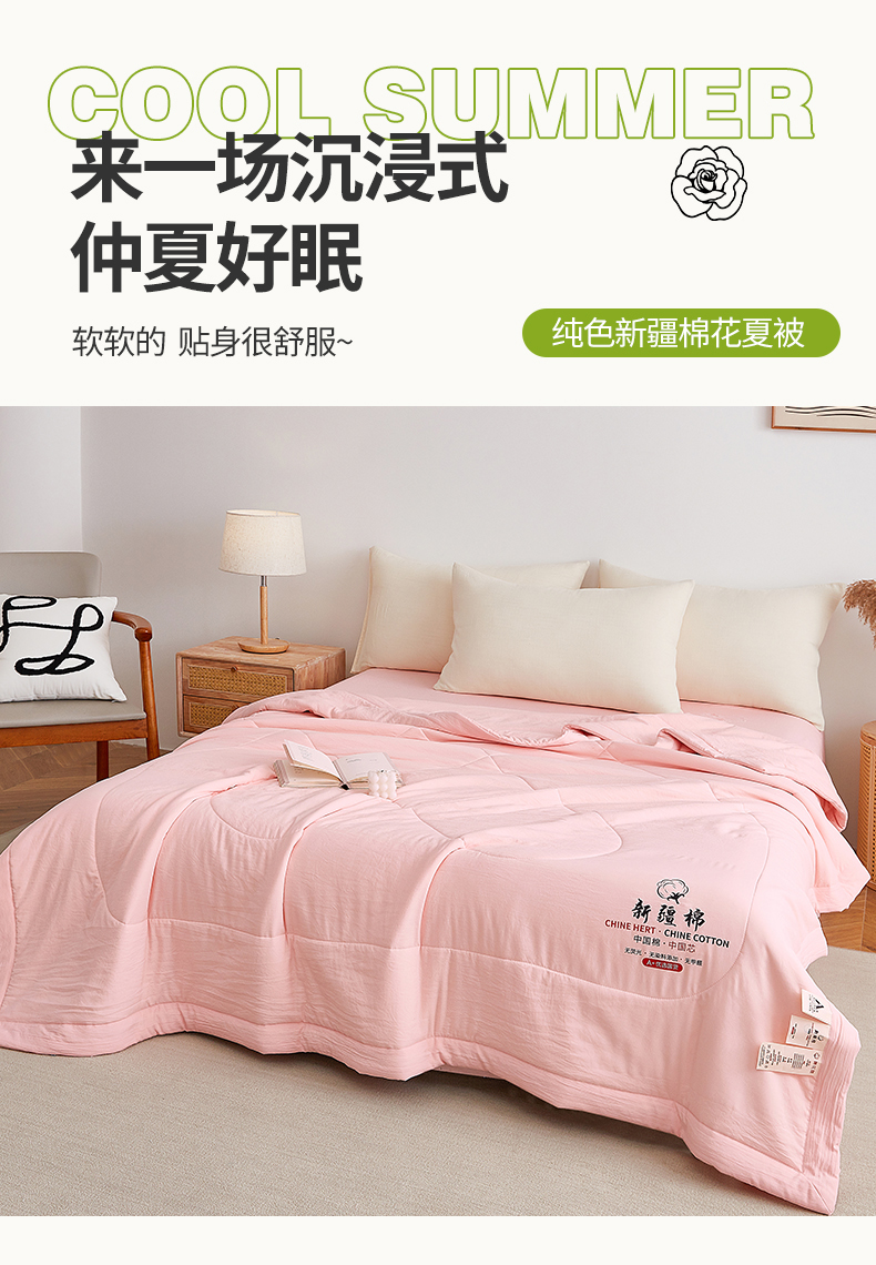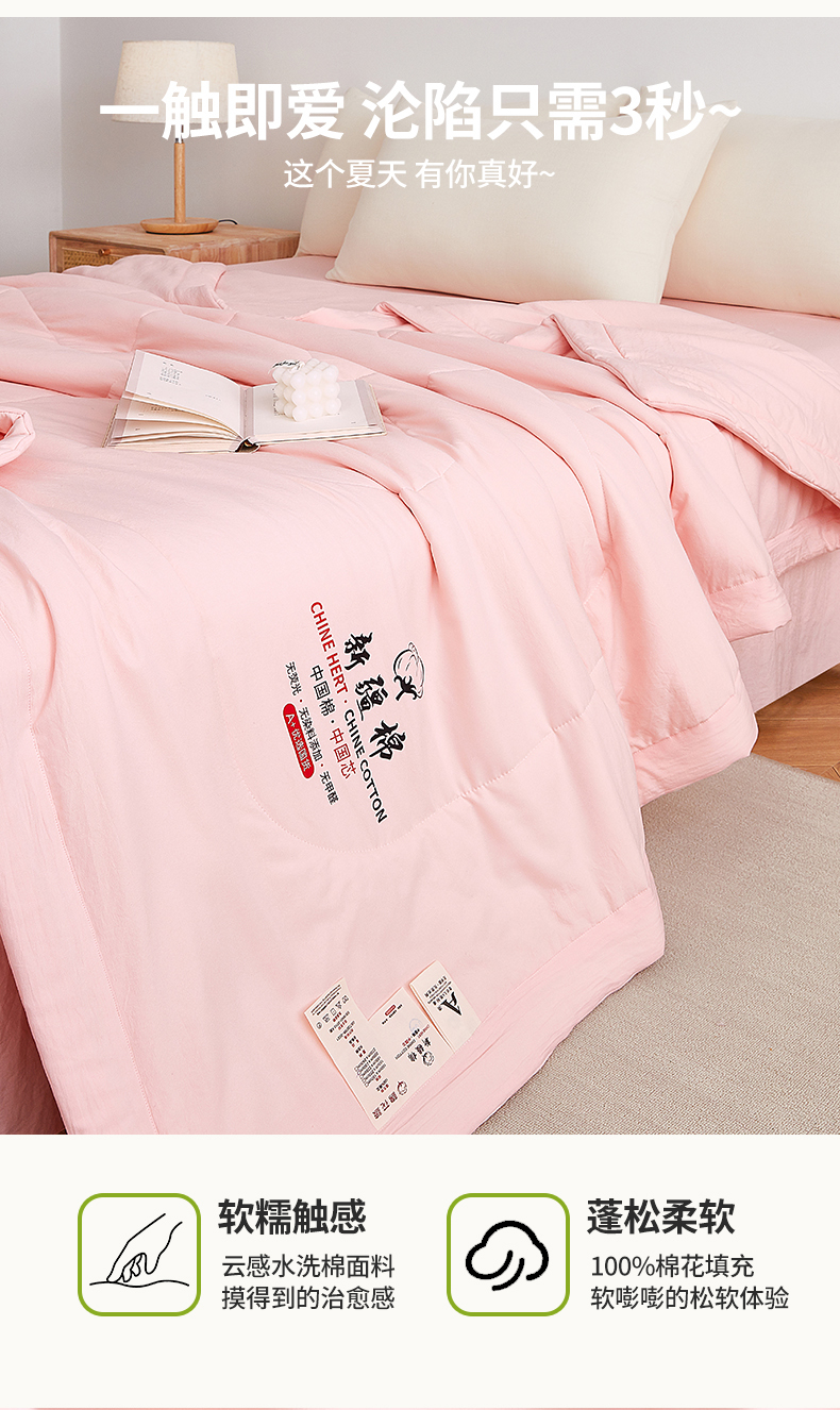 尊妙被业 2026新款水洗棉棉花夏被100%新疆棉花被被子被芯填充包检测 蔷薇粉