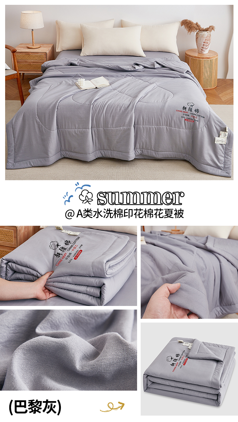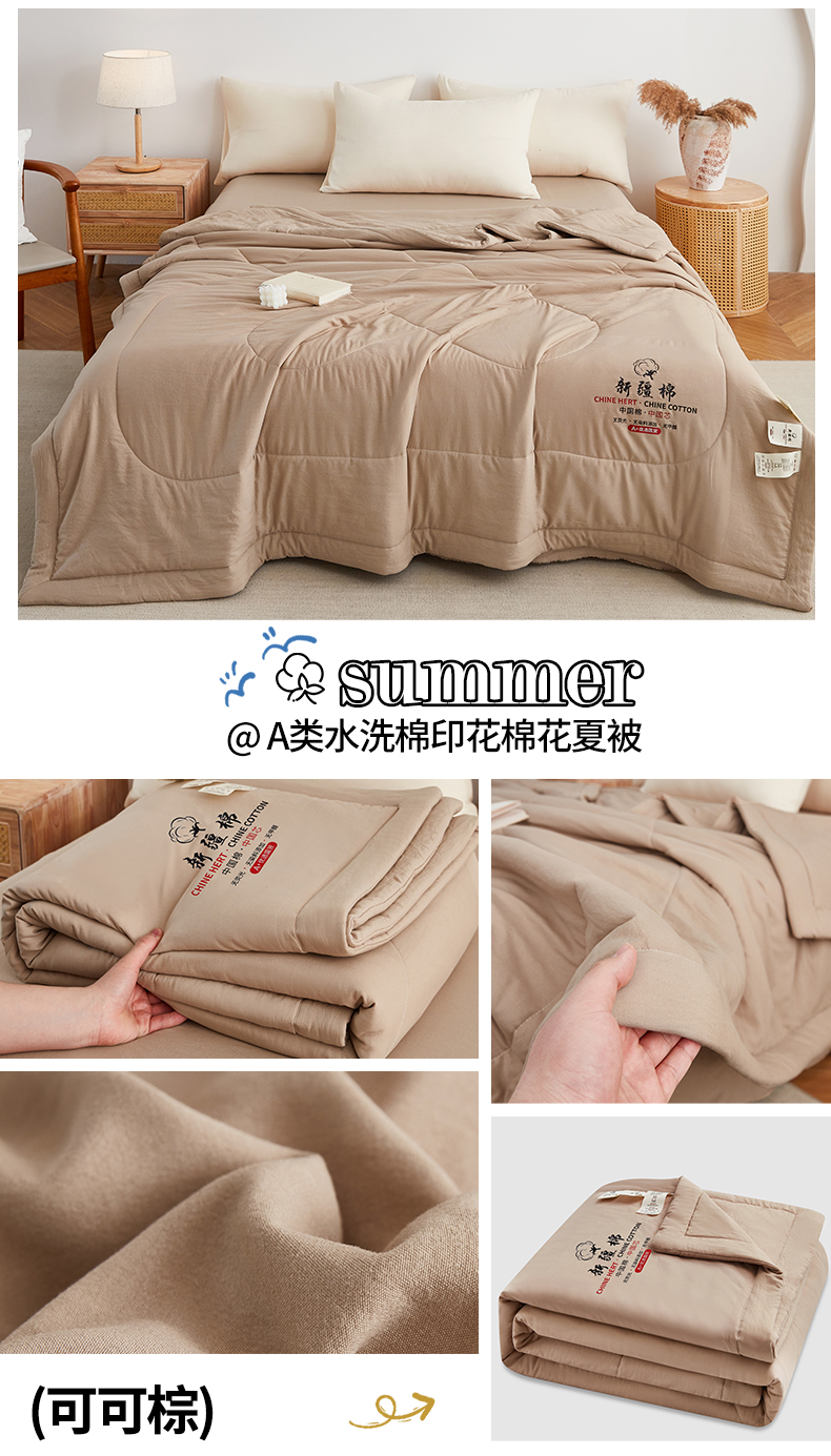 (总)尊妙被业 2026新款水洗棉棉花夏被100%新疆棉花被被子被芯填充包检测,巴黎灰,复古蓝,可可棕,浅云白,蔷薇粉,岩松绿