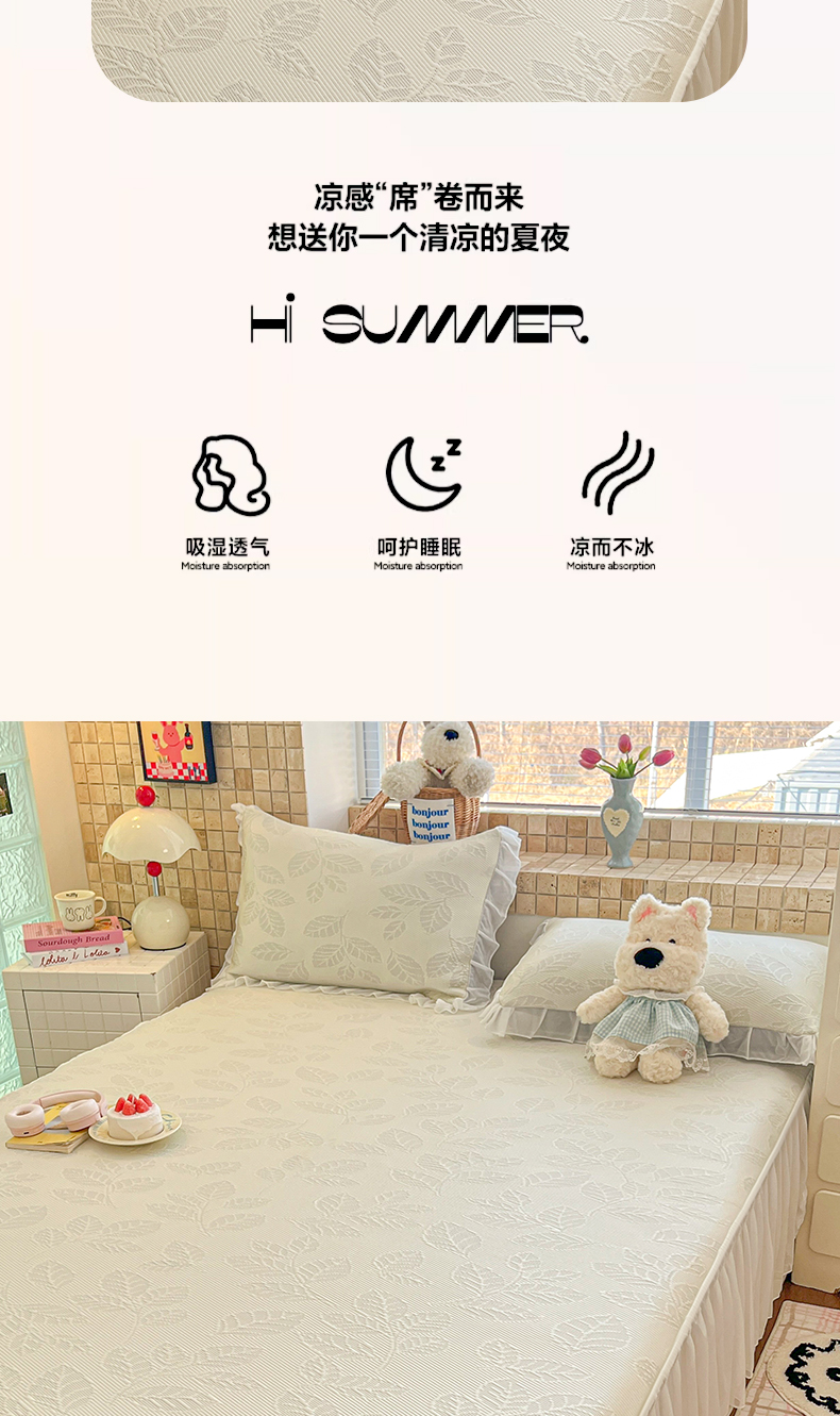 (总)川悦生活 2026新款PE凉感提花豆豆席平铺款三件套,费尔冰雪,尼尔-粉,尼尔-星灰,朴朴小旺,甜心-奶粉,甜心-水蓝,甜心-月灰,甜心奶猫,夏季岛屿-粉,夏季岛屿-月银,星花小猫,月桂-月银,奶油星月,爱心猫咪-茶青,爱心猫咪-月白,清爽蓝调,小熊仔,樱桃果塔,沐月玫瑰-清粉