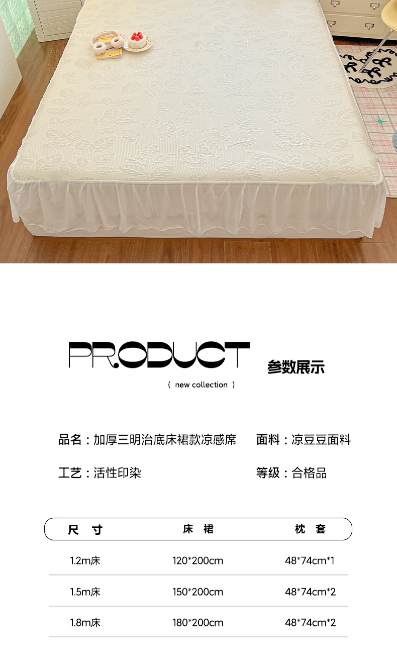 商品名称:川悦生活 2026新款加厚三明治底床裙款凉感席三件套 床裙月桂-月银