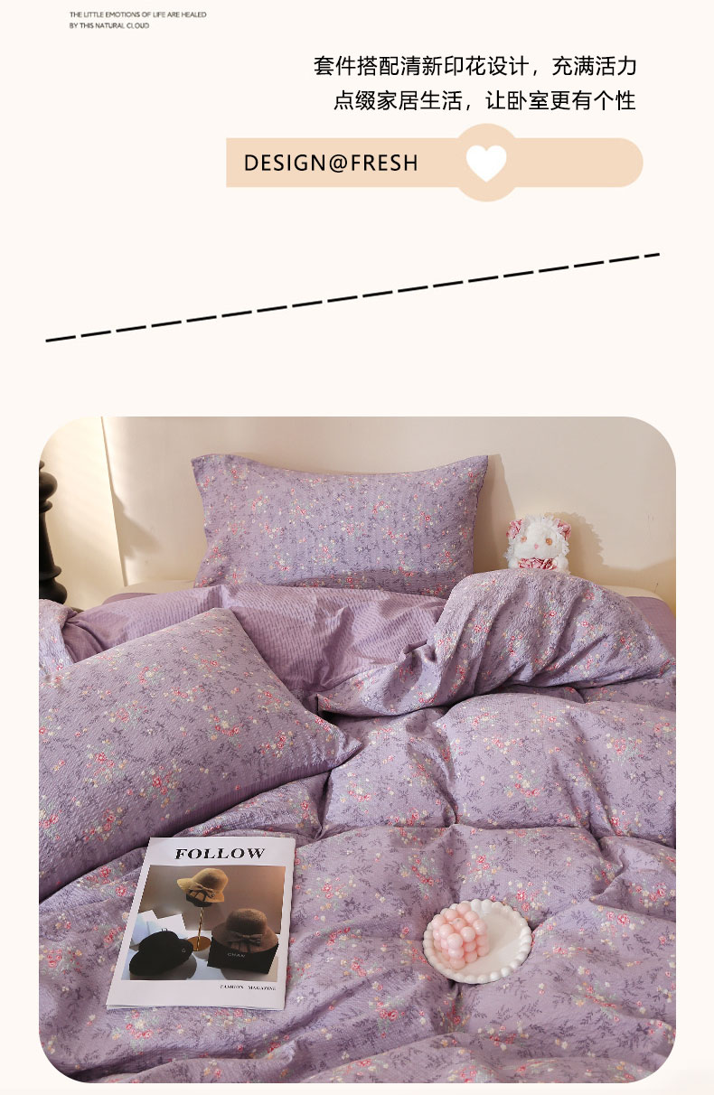 当前位置: 91家纺网 > 商品网购 > 床品套件 > 四件套 > 化纤活性四件套 > 北部居 2026新款柔软泡芙纱高克重印花四件套 梦回浅溪