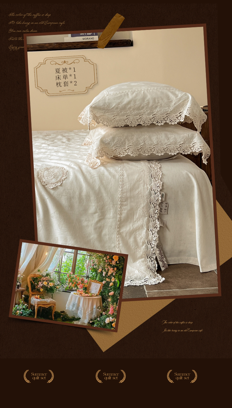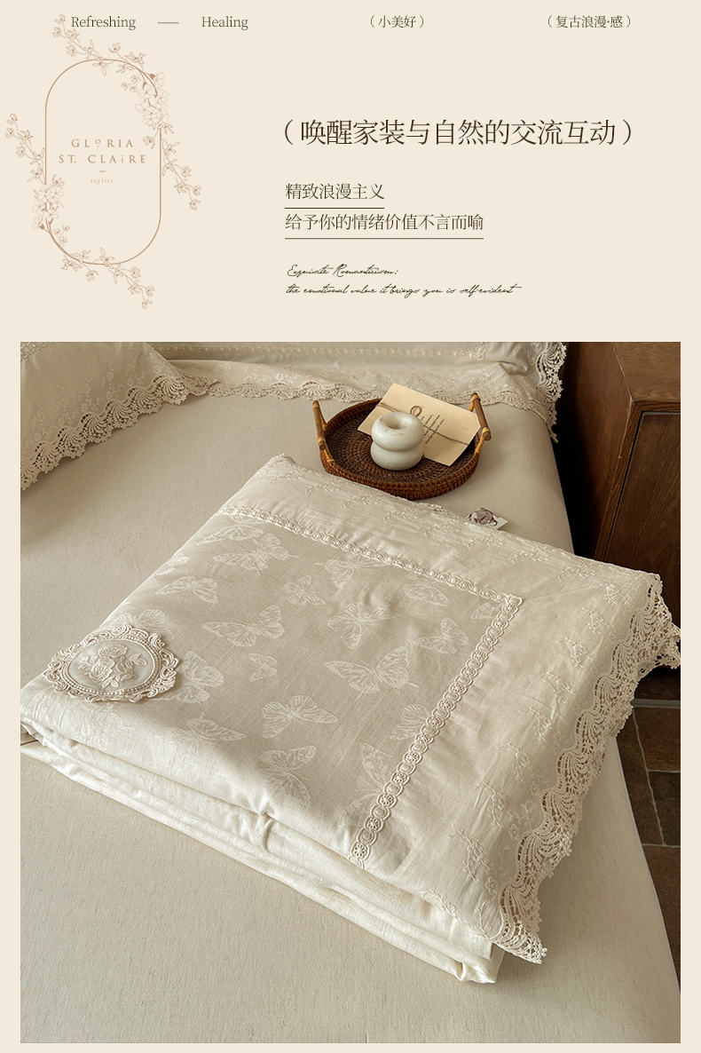 (总)桂雅居 2025新款舒适麻棉麻蕾丝花边单床盖床盖单件,海棠红,栗壳色,麻本色,烟墨灰,组合图仅供展示不可下单,手拎袋包装,清婉花语-灰,秋意-红,素锦-咖
