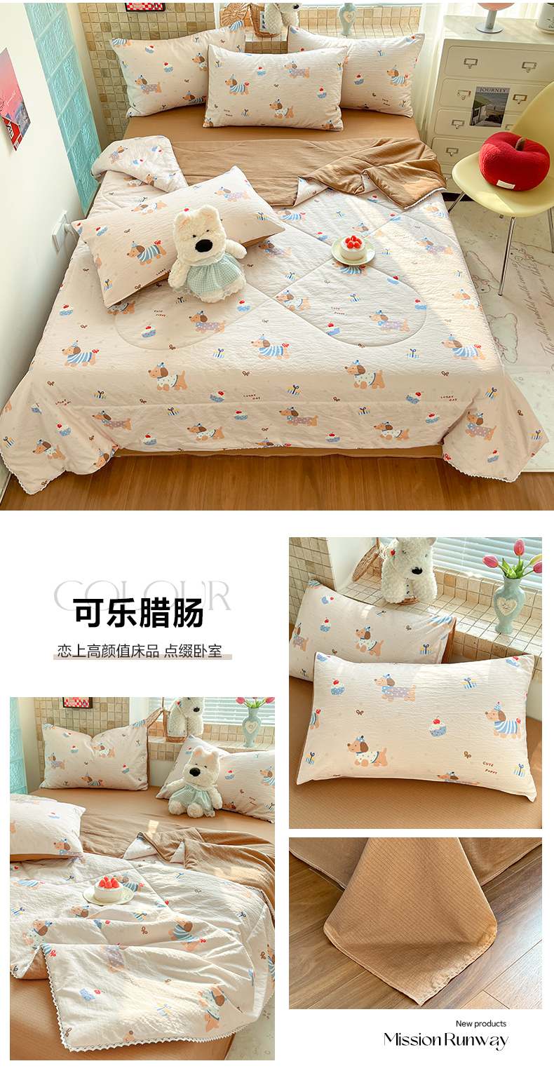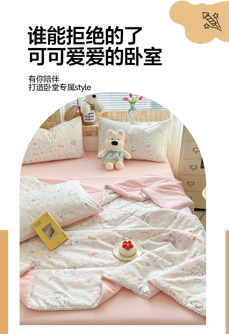(总)川悦生活 2026新款双层纱木棉夏被四件套,星星西高地,嘟嘟花园,海盐小咪,花都小狗,花田乐园,花艺喵喵,可乐腊肠,腊肠甜心,腊肠庄园,奶油糕糕喵,奶油可盐,汽水小咪,恰星星,巧克力乐园,数星星,糖豆小旺,甜梦心愿,西斯花圃,香芋甜梦,小猫庄园,杏仁小星星,组合图