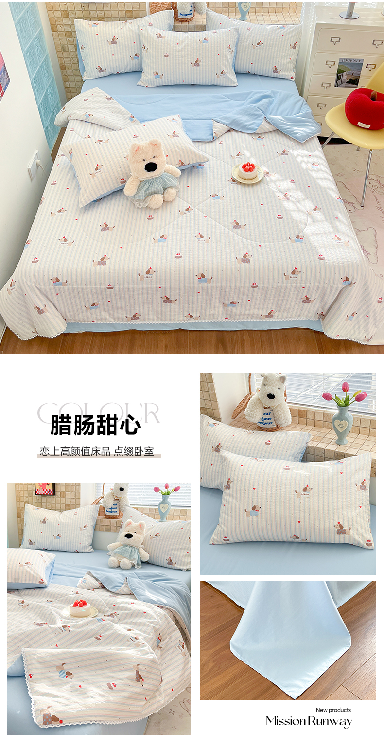 商品名称:川悦生活 2026新款A类双层皱皱纱夏被空调被 夏被腊肠甜心