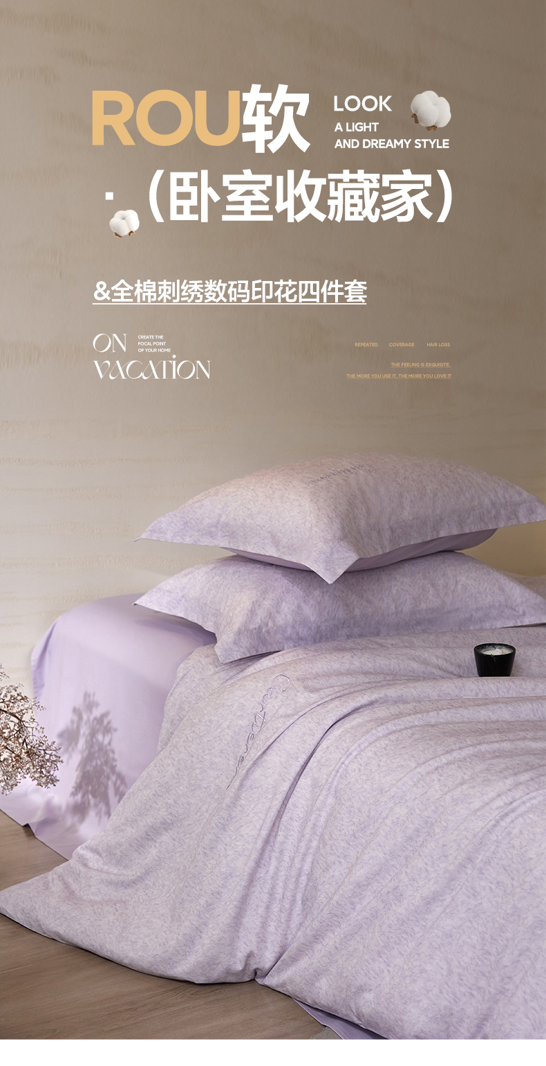 当前位置: 91家纺网 > 商品网购 > 床品套件 > 四件套 > 全棉普通四件套 > 花愿(原花纪) 2026新款全棉纯棉刺绣数码印花四件套-蒂娜 蒂娜-豆蔻紫