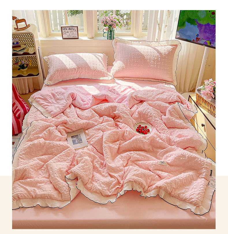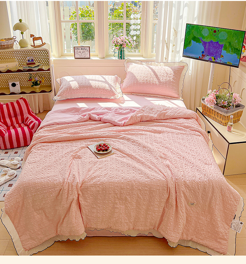 寐居家纺 2026新款A类韩式提花泡芙夏被夏凉被空调被 桃桃泡芙