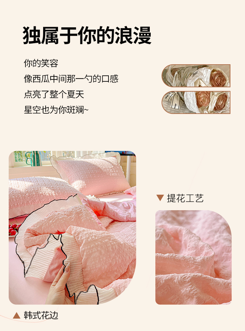 商品名称:寐居家纺 2026新款A类韩式提花泡芙夏被夏凉被空调被 桃桃泡芙
