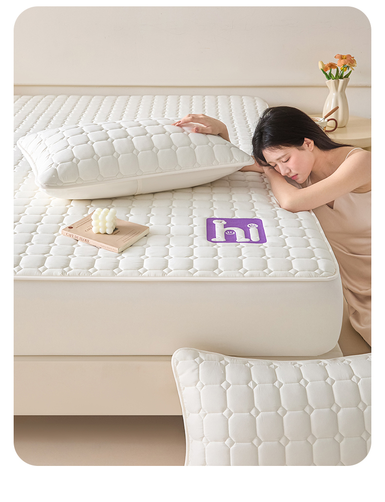 • 91家纺网 家纺一手货源 找家纺 居眠 2026新款A类棉花夹棉防水床笠-Hi smile Hi smile-卡