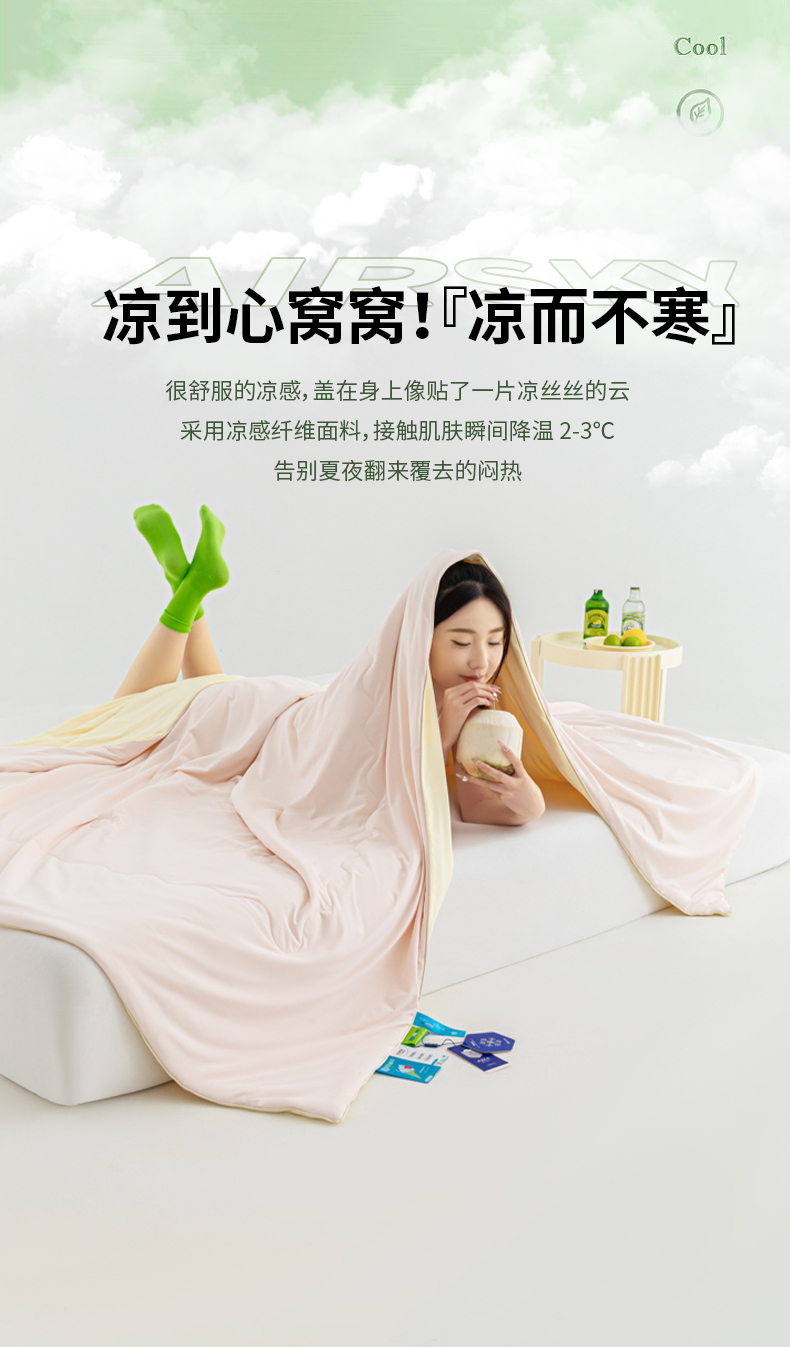 当前位置: 91家纺网 > 商品网购 > 被子 > 夏被 > 爱彼家纺 2026夏季热款冰卡Pro+深睡双面用锦纶夏被空调被夏季A类抗菌冰凉单夏被-冰卡夏被系列 冰卡-浅粉+芝士