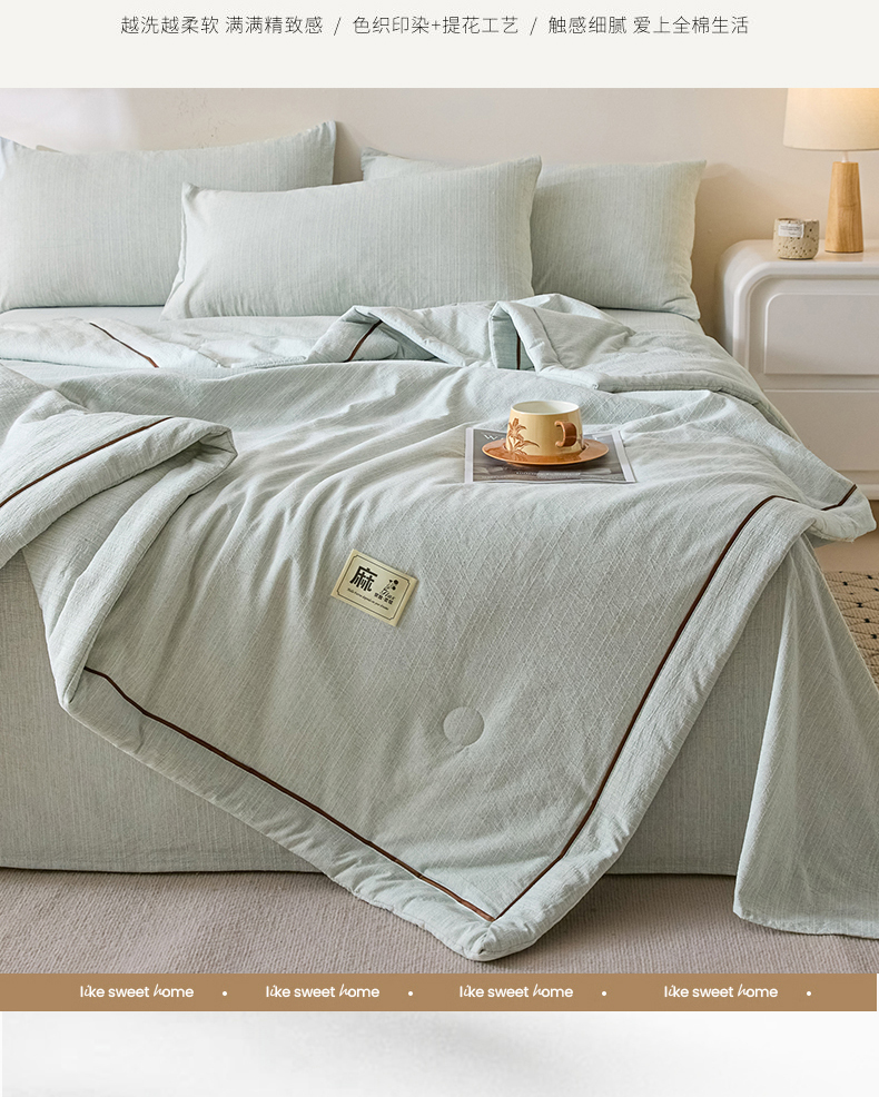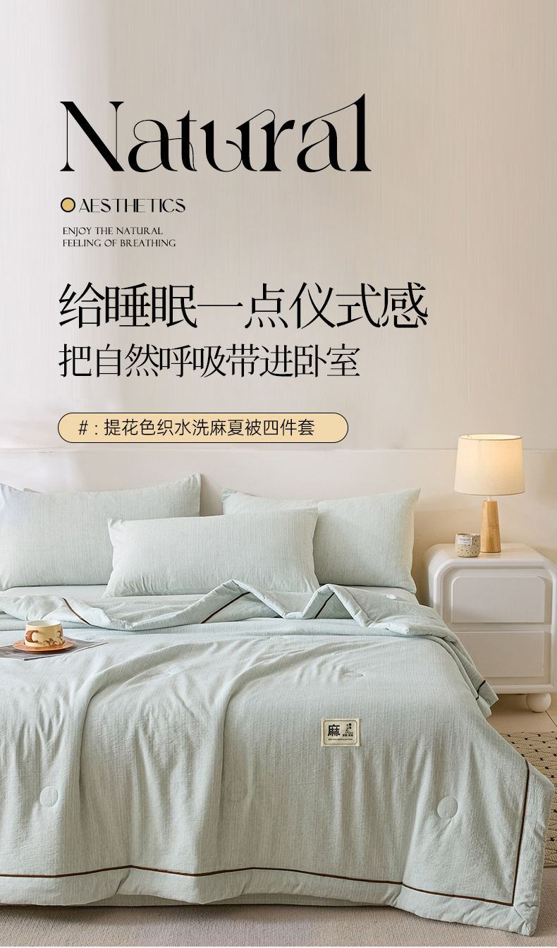 (总)蓝极人 2026新款提花色织水洗麻夏被四件套,色织-抹茶,色织-晨曦黄,色织-湖水蓝,色织-玫瑰粉,色织-牛仔蓝,色织-葡萄青,色织-烟灰,组合图仅供展示-不可下单