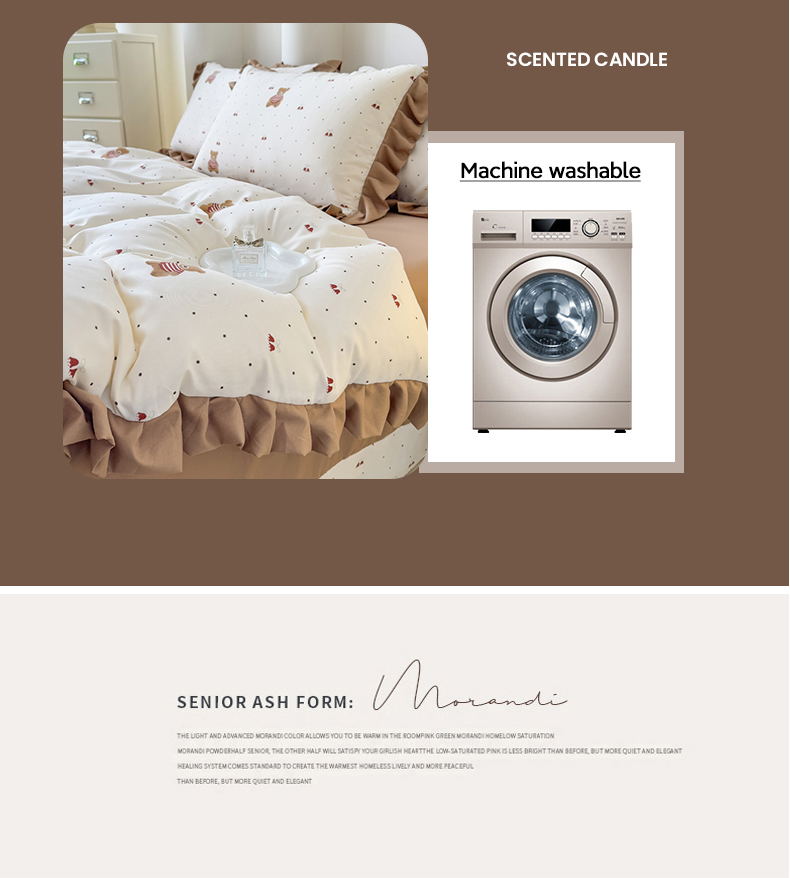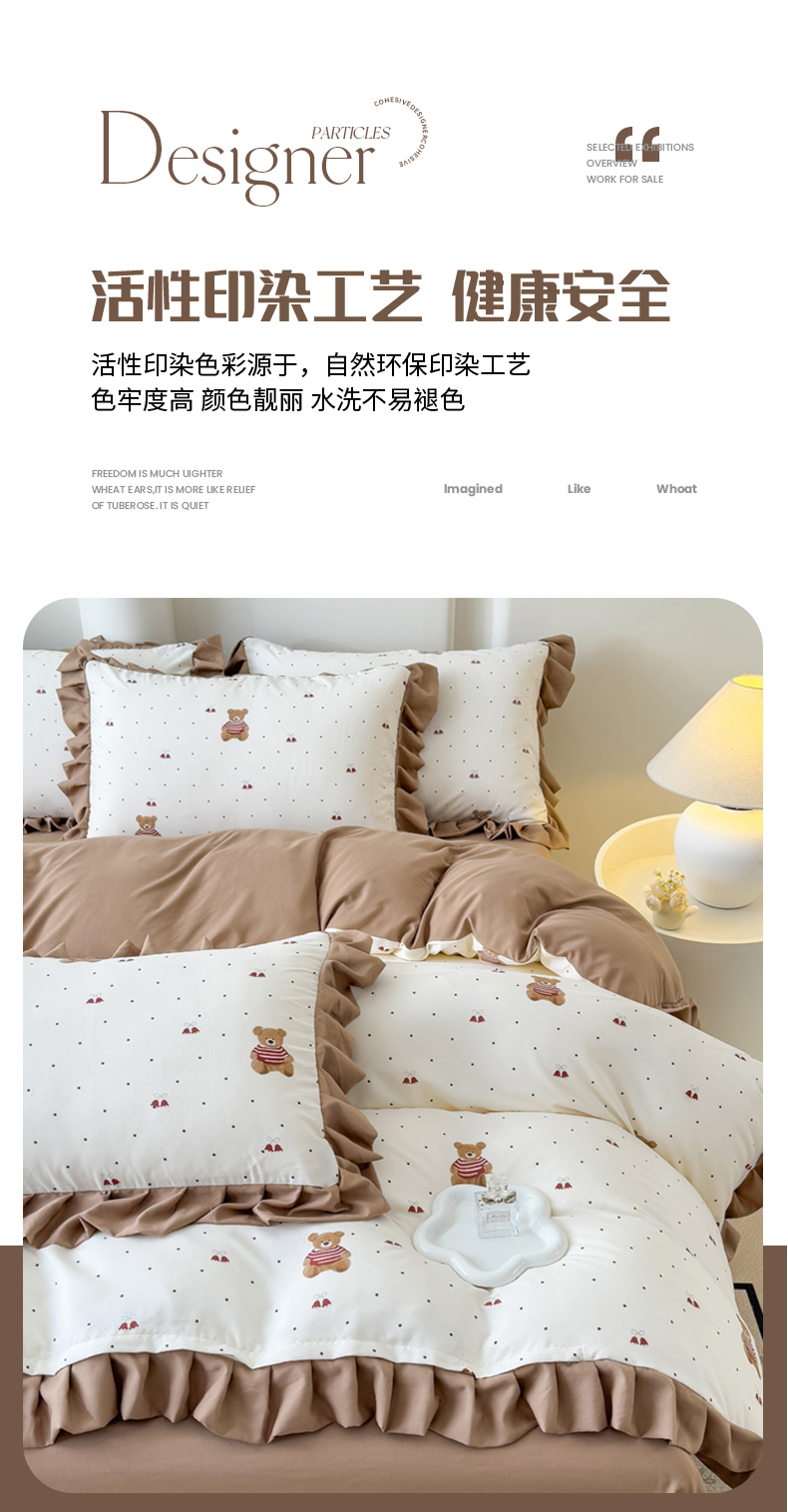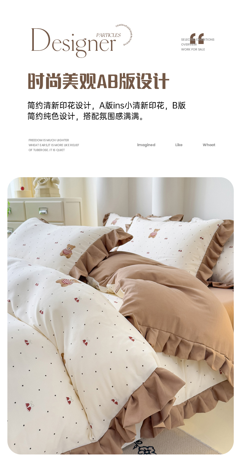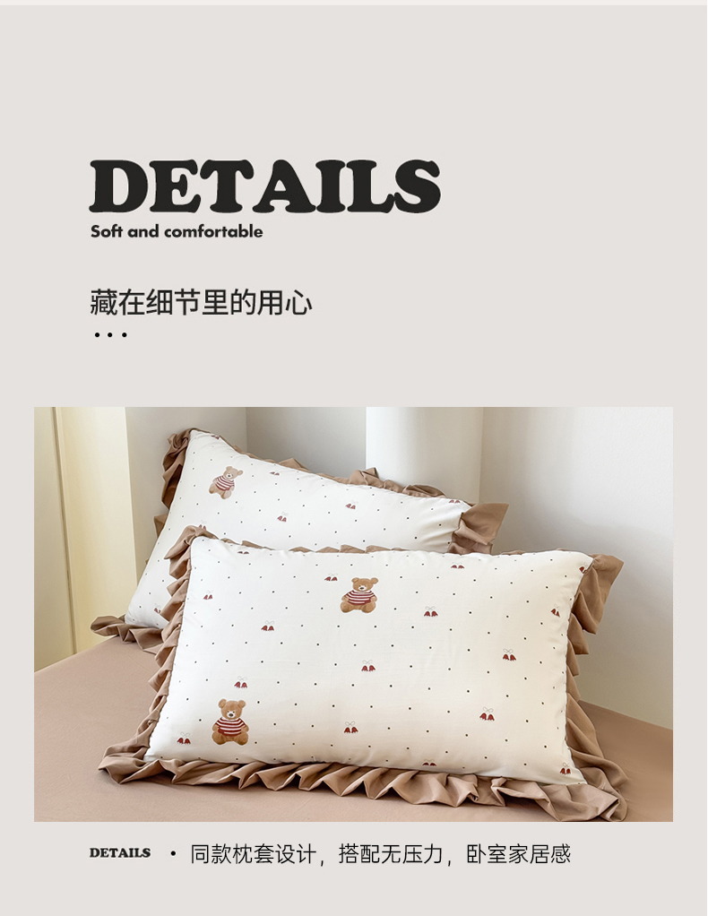 当前位置: 91家纺网 > 商品网购 > 床品套件 > 四件套 > 其它四件套 > 晚爱家纺(原晚安家居) 2026韩版花边四件套 有氧针织双层纱天竺棉超柔小清新四件套 铃铛熊