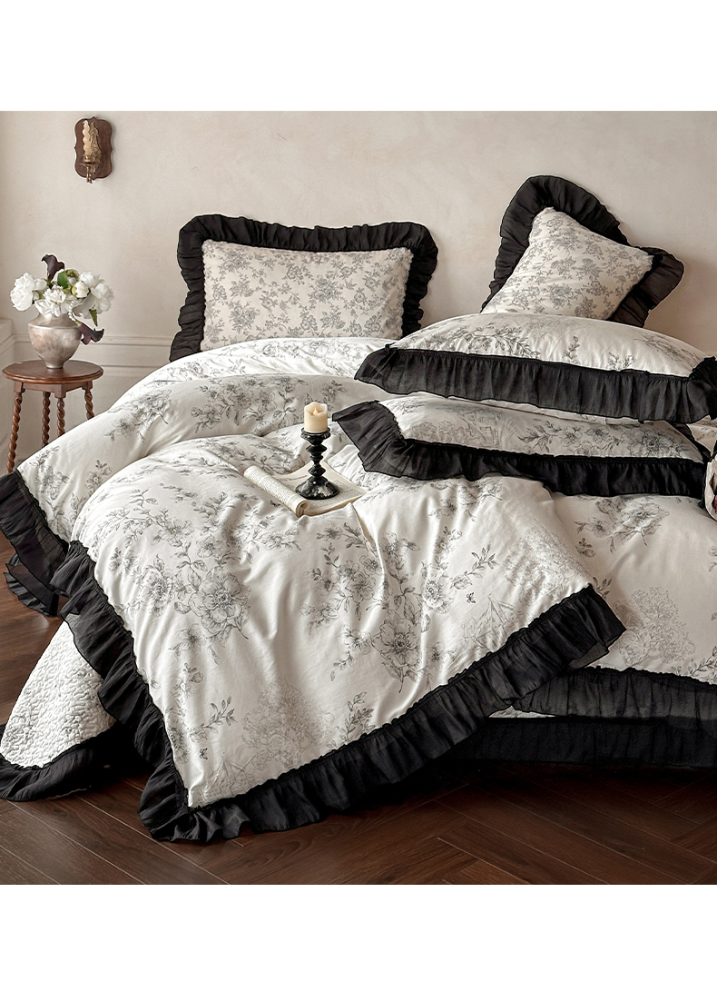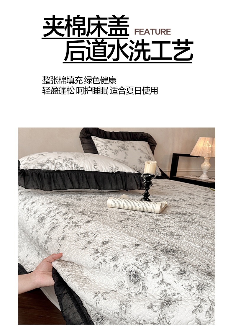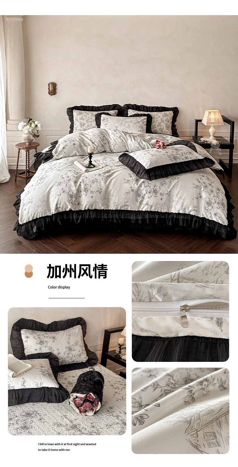 (总)蓝邻家纺 2026新款全棉复古风真丝皱花边夏被夏被四件套,加州风情,洛莉,忘忧
