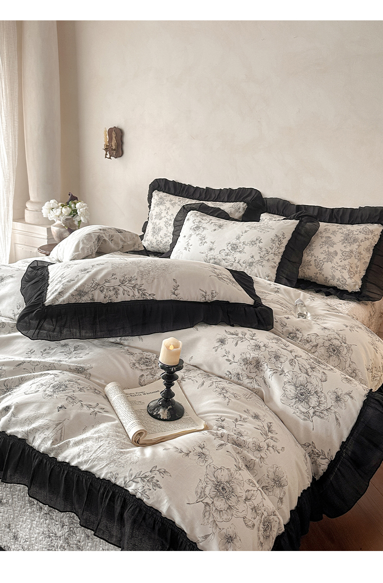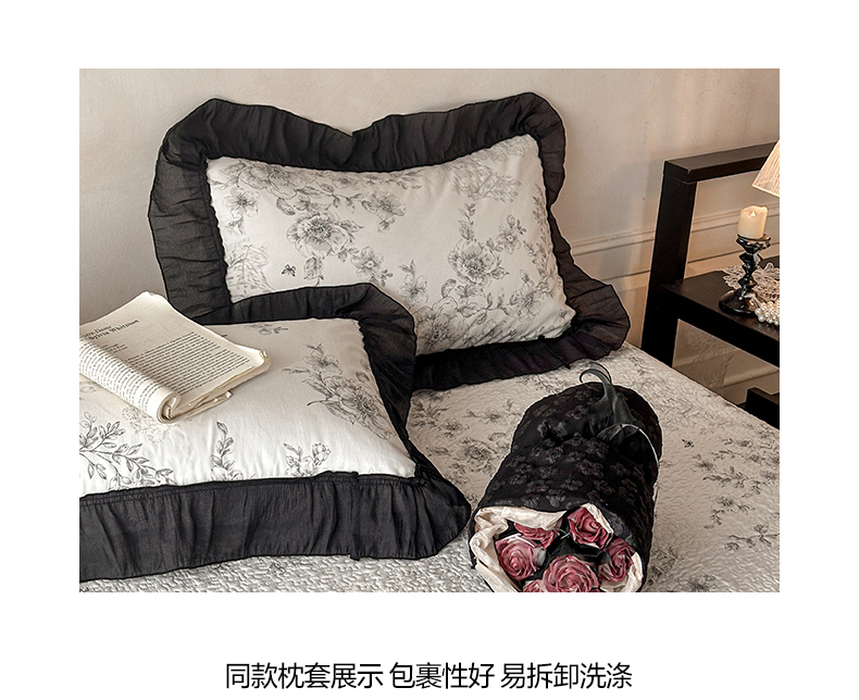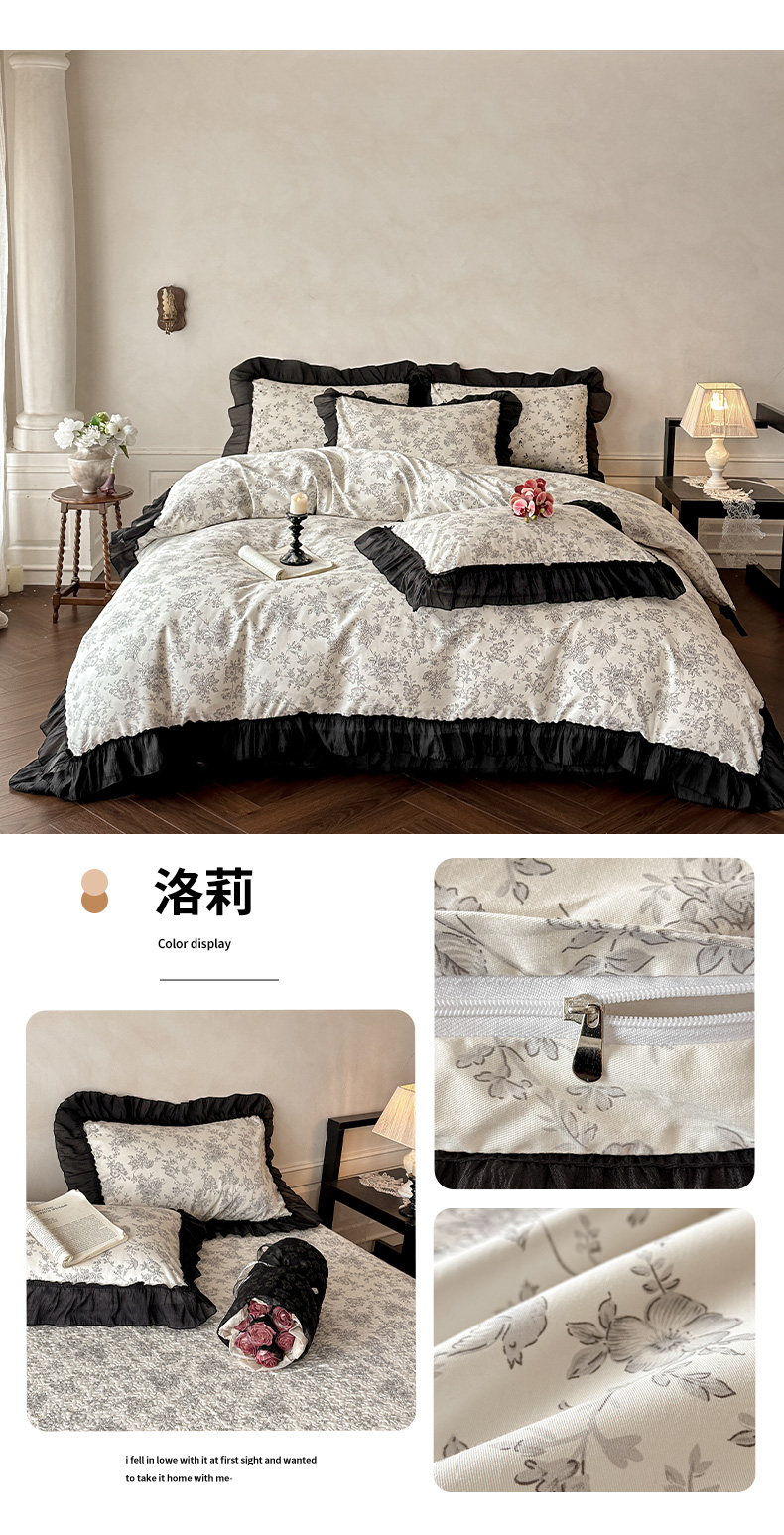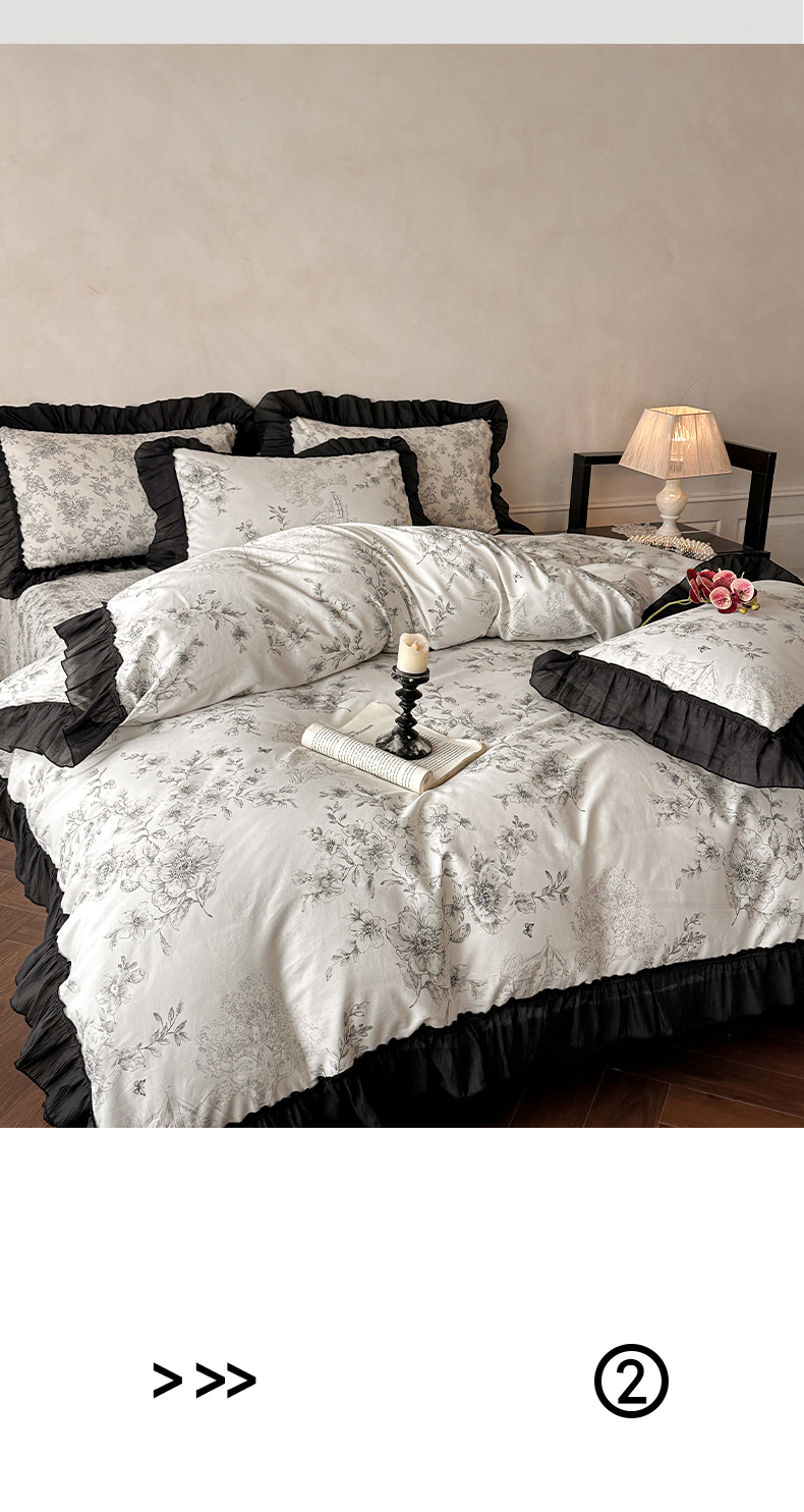 (总)蓝邻家纺 2026新款全棉复古风真丝皱花边夏被夏被四件套,加州风情,洛莉,忘忧