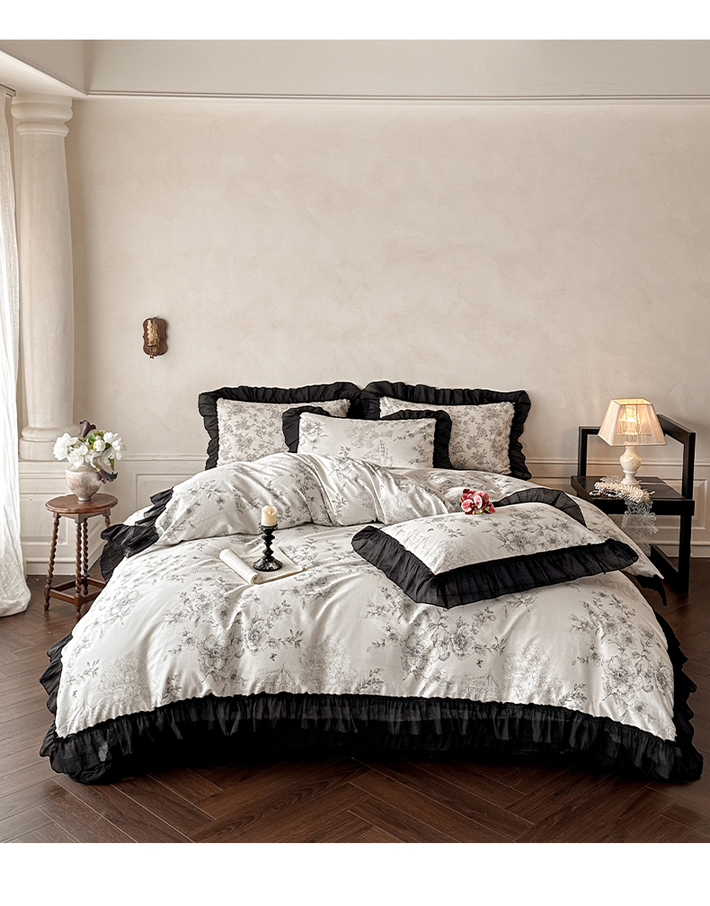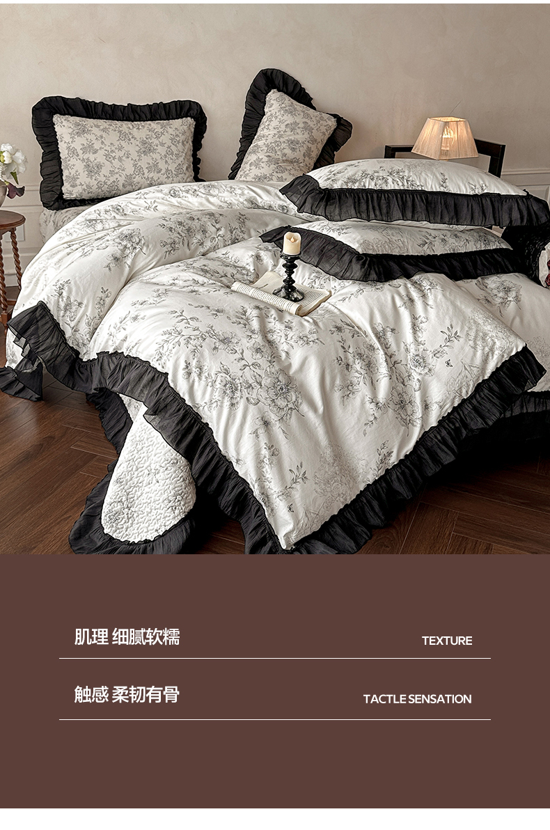 商品名称:(总)蓝邻家纺 2026新款全棉真丝皱花边款床盖四件套系列