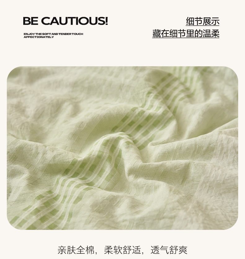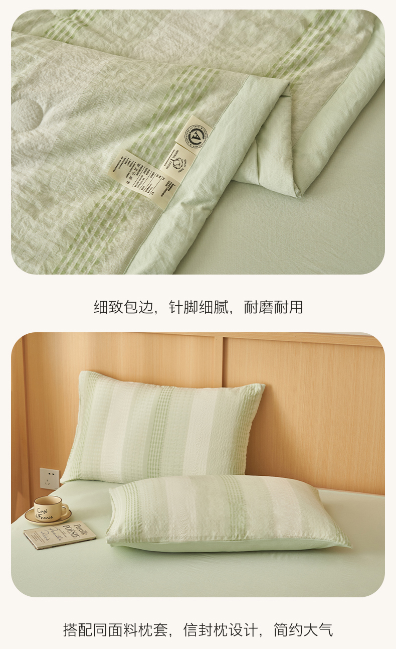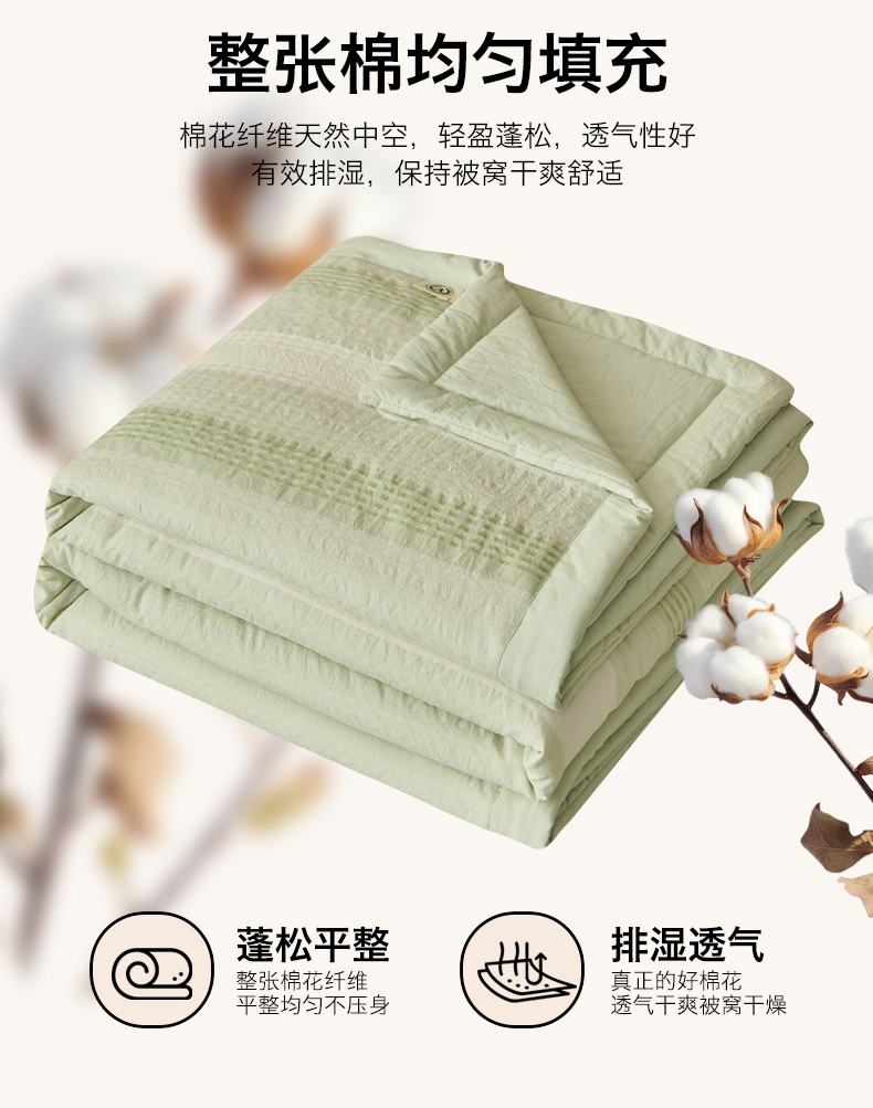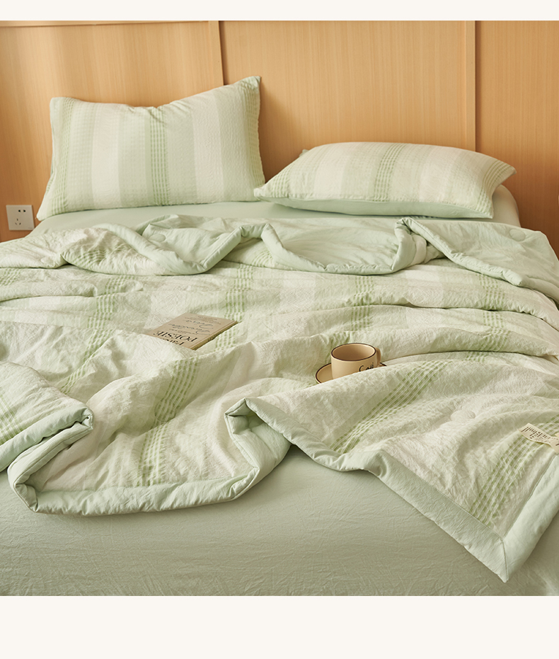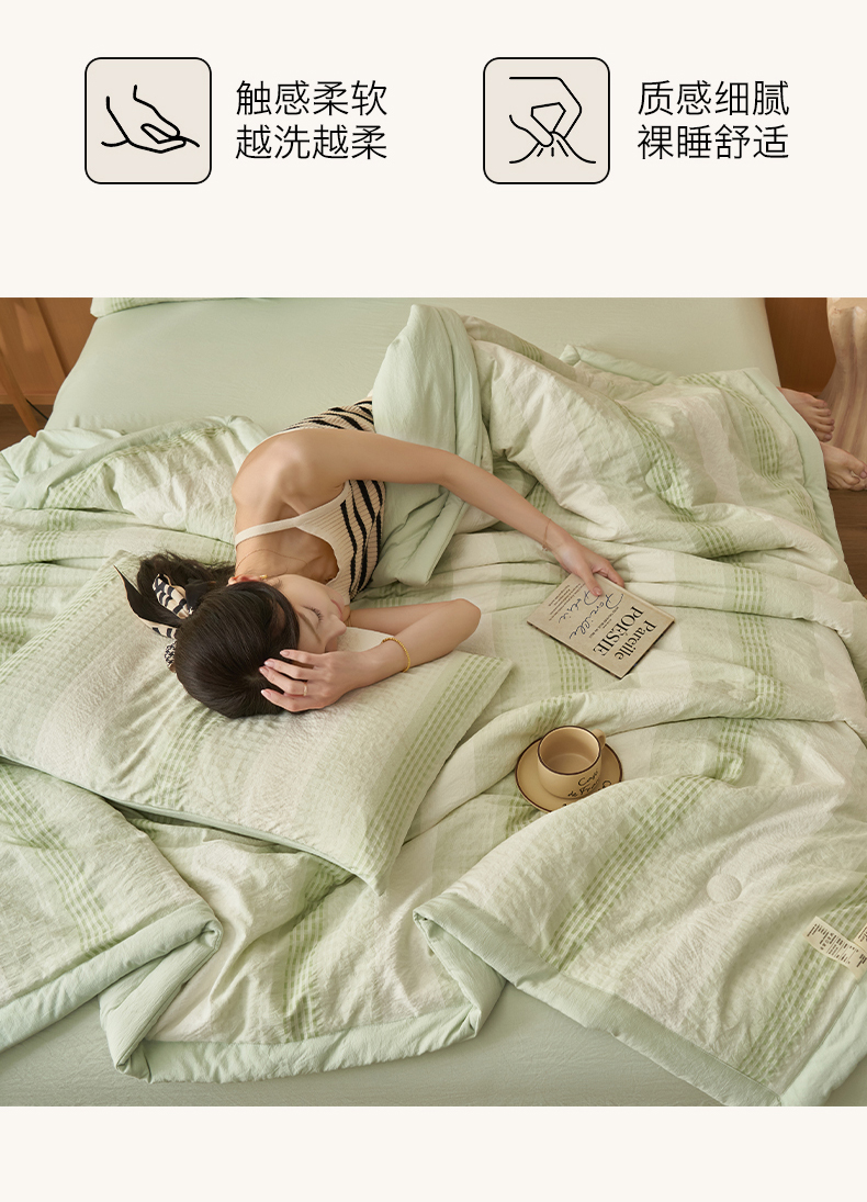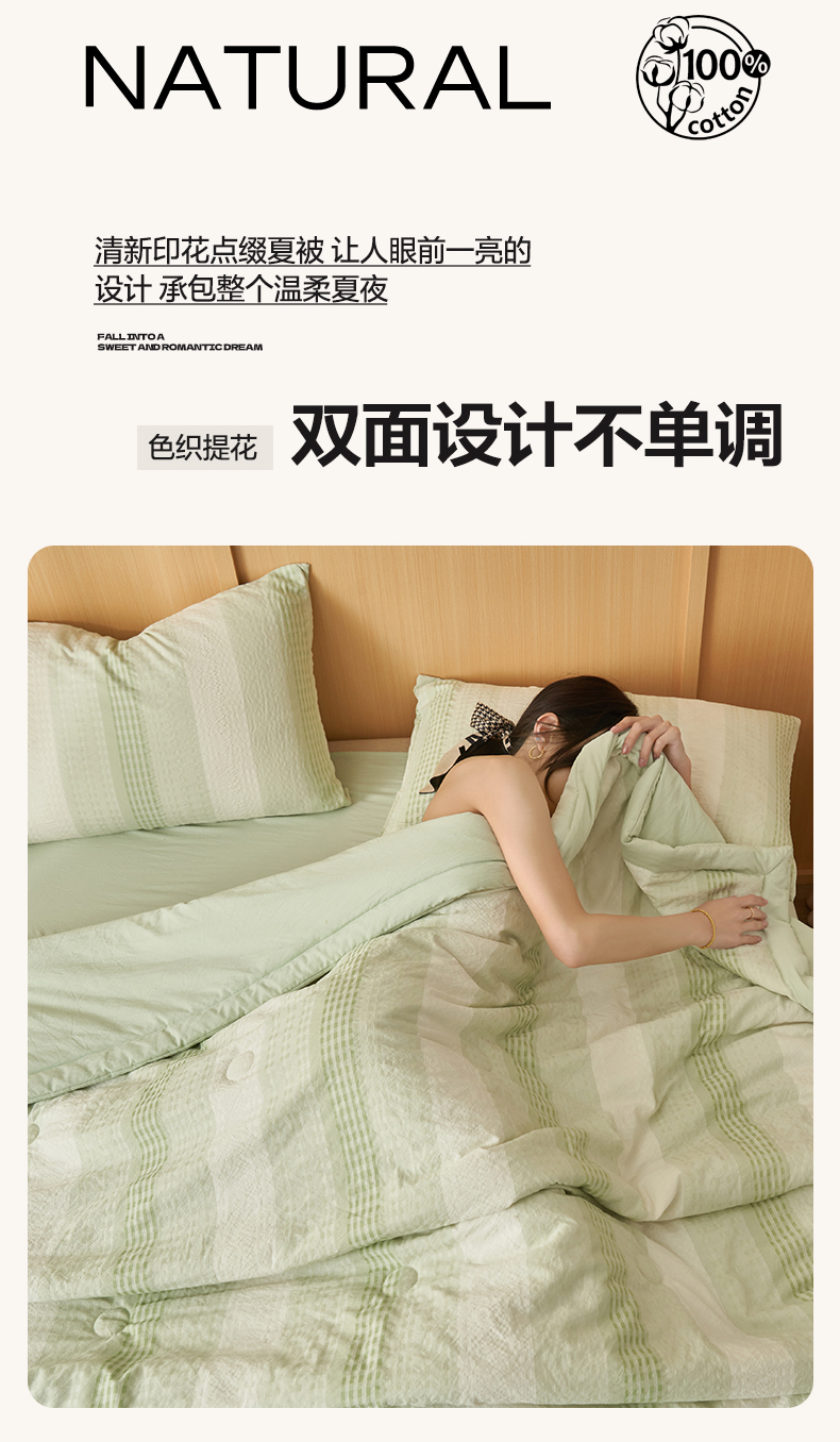 当前位置: 91家纺网 > 商品网购 > 被子 > 夏被 > 简如 2026新款色织提花新疆棉花夏凉被四件套-织雅系列 织雅-绿