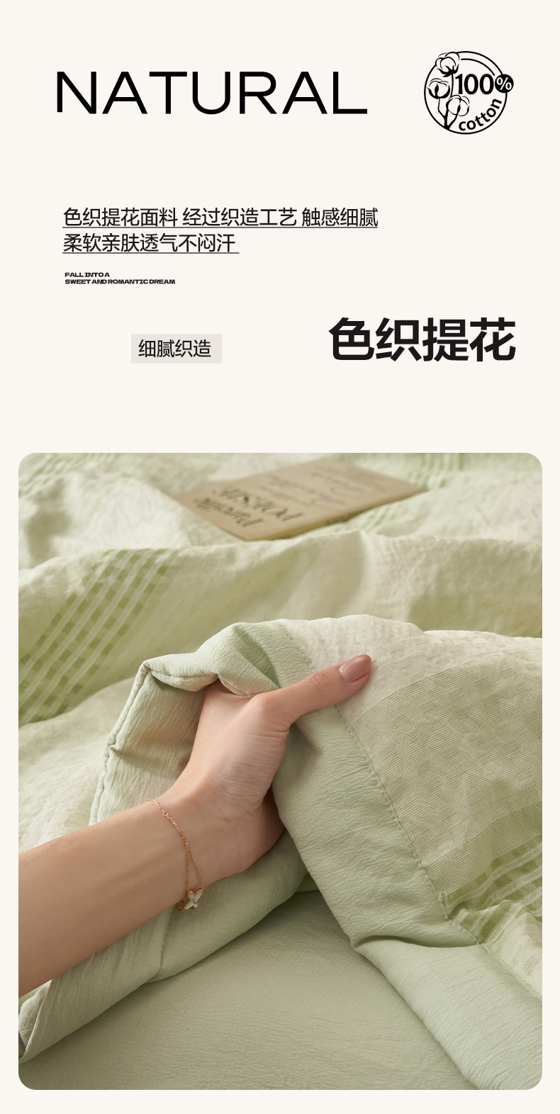 (总)简如 2026新款色织提花新疆棉花夏凉被四件套-织雅系列,织雅-绿,织雅-粉,织雅-灰,织雅-驼