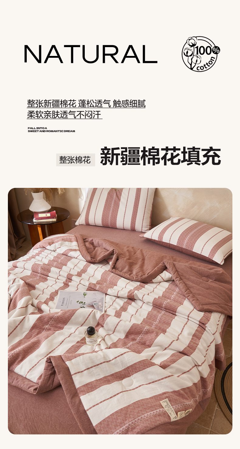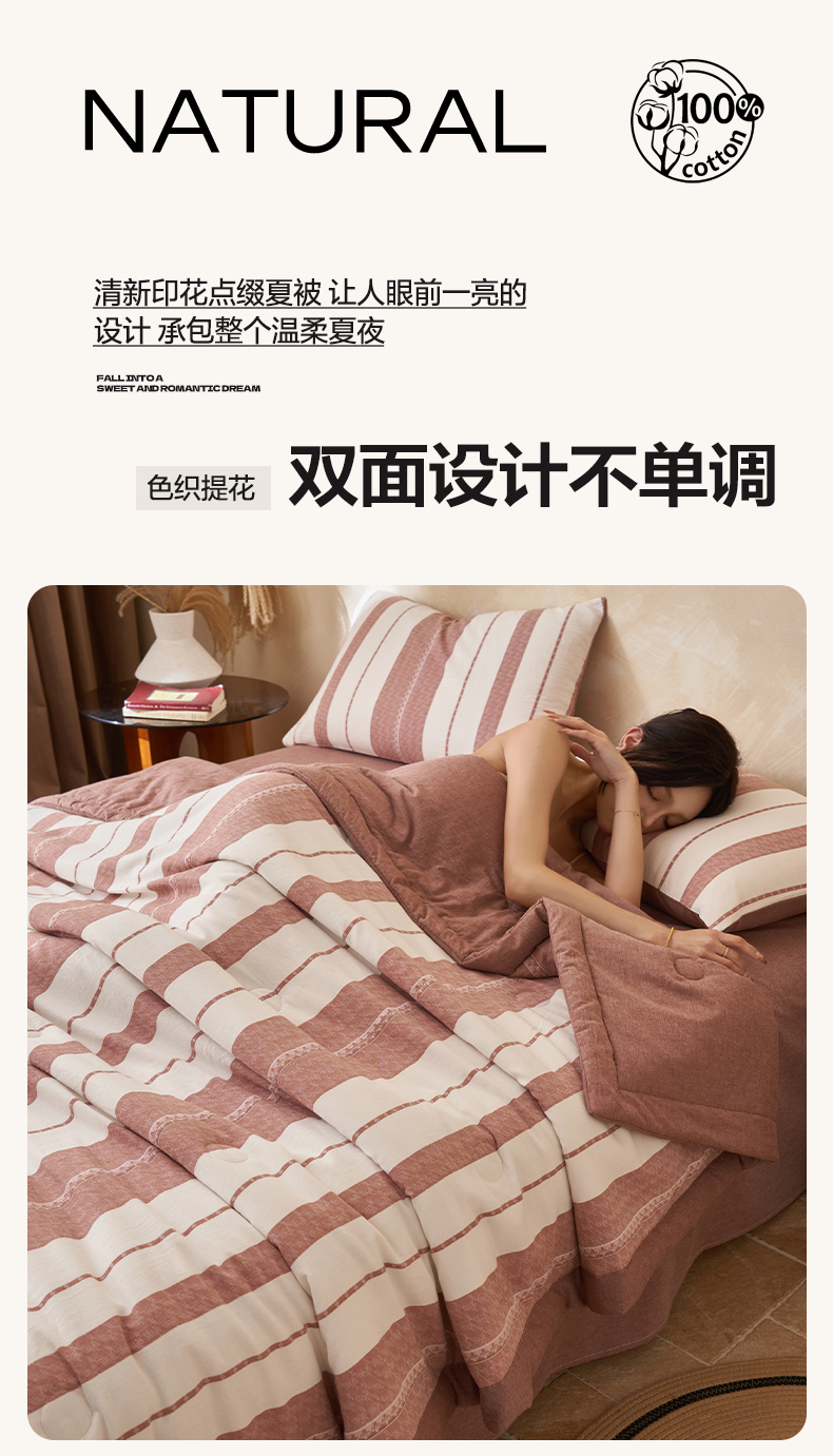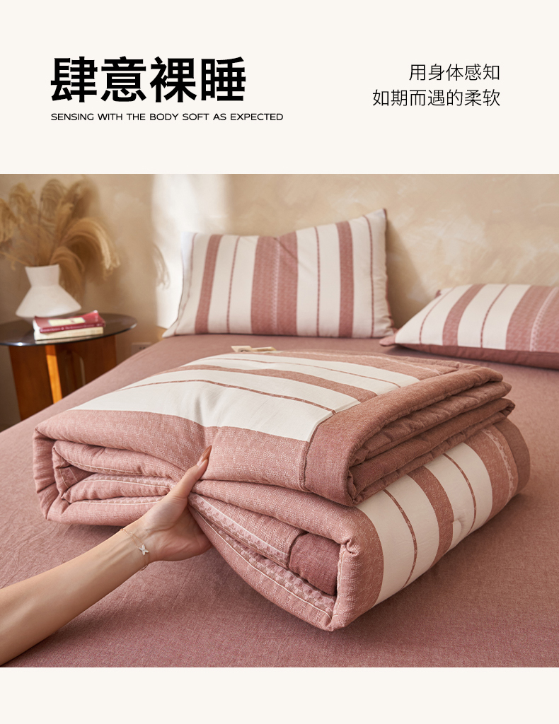 (总)简如 2026新款里外全棉色织提花夏凉被夏被空调被四件套素条系列,素条-粉,素条-灰,素条-咖,素条-蓝,组合图仅供参考不可下单
