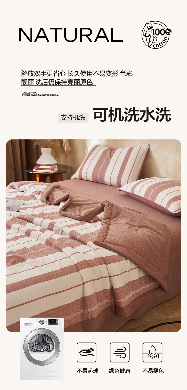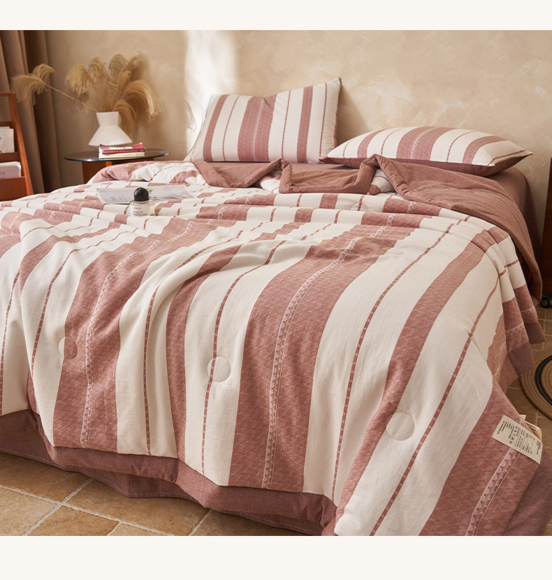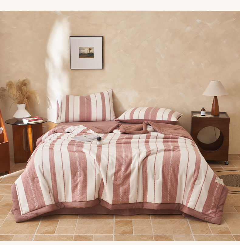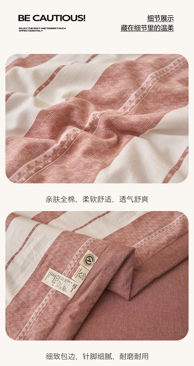 (总)简如 2026新款里外全棉色织提花夏凉被夏被空调被四件套素条系列,素条-粉,素条-灰,素条-咖,素条-蓝,组合图仅供参考不可下单