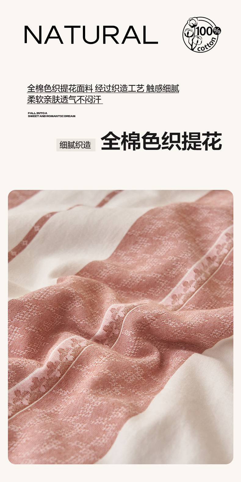 (总)简如 2026新款色织提花新疆棉花夏凉被四件套-织雅系列,织雅-绿,织雅-粉,织雅-灰,织雅-驼