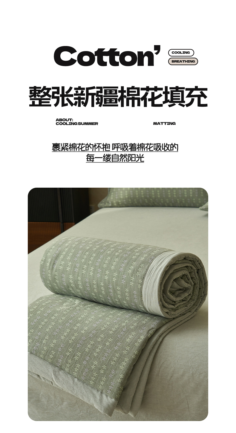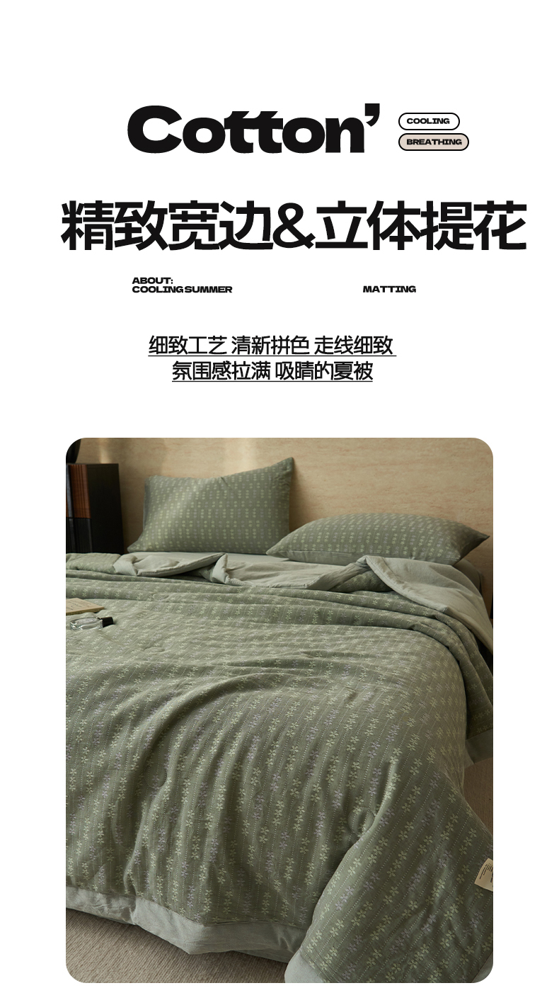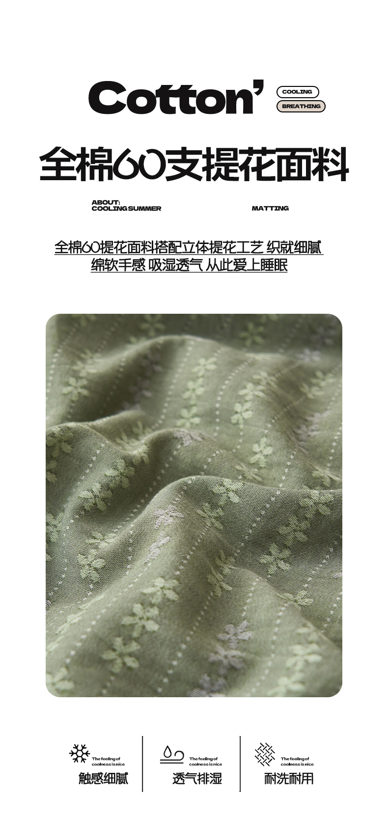 • 91家纺网 家纺一手货源 找家纺 简如 2026新款全棉60提花里外纯棉棉花夏凉被四件套 慧荣-香草绿