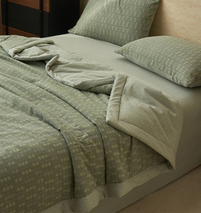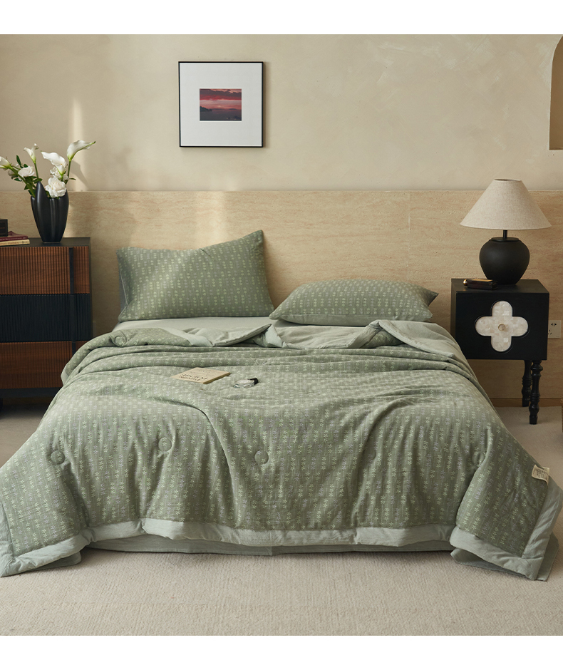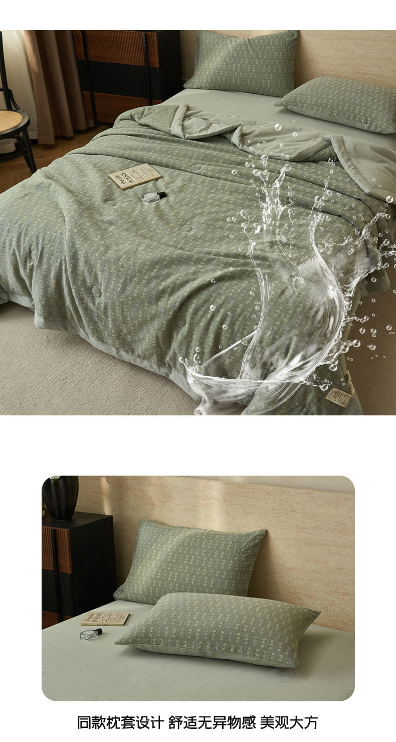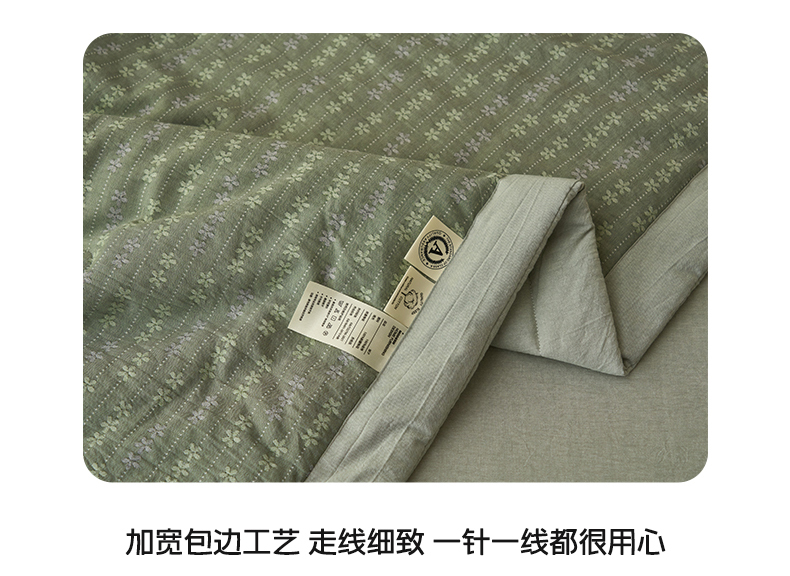 • 91家纺网 家纺一手货源 找家纺 简如 2026新款全棉60提花里外纯棉棉花夏凉被四件套 慧荣-香草绿
