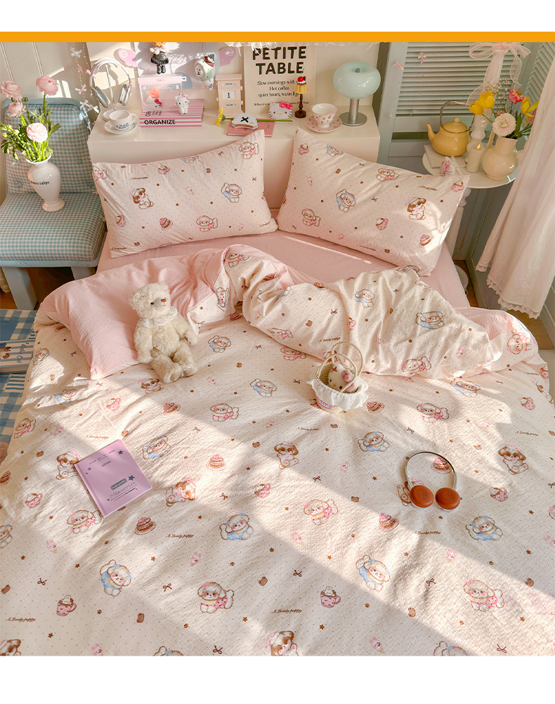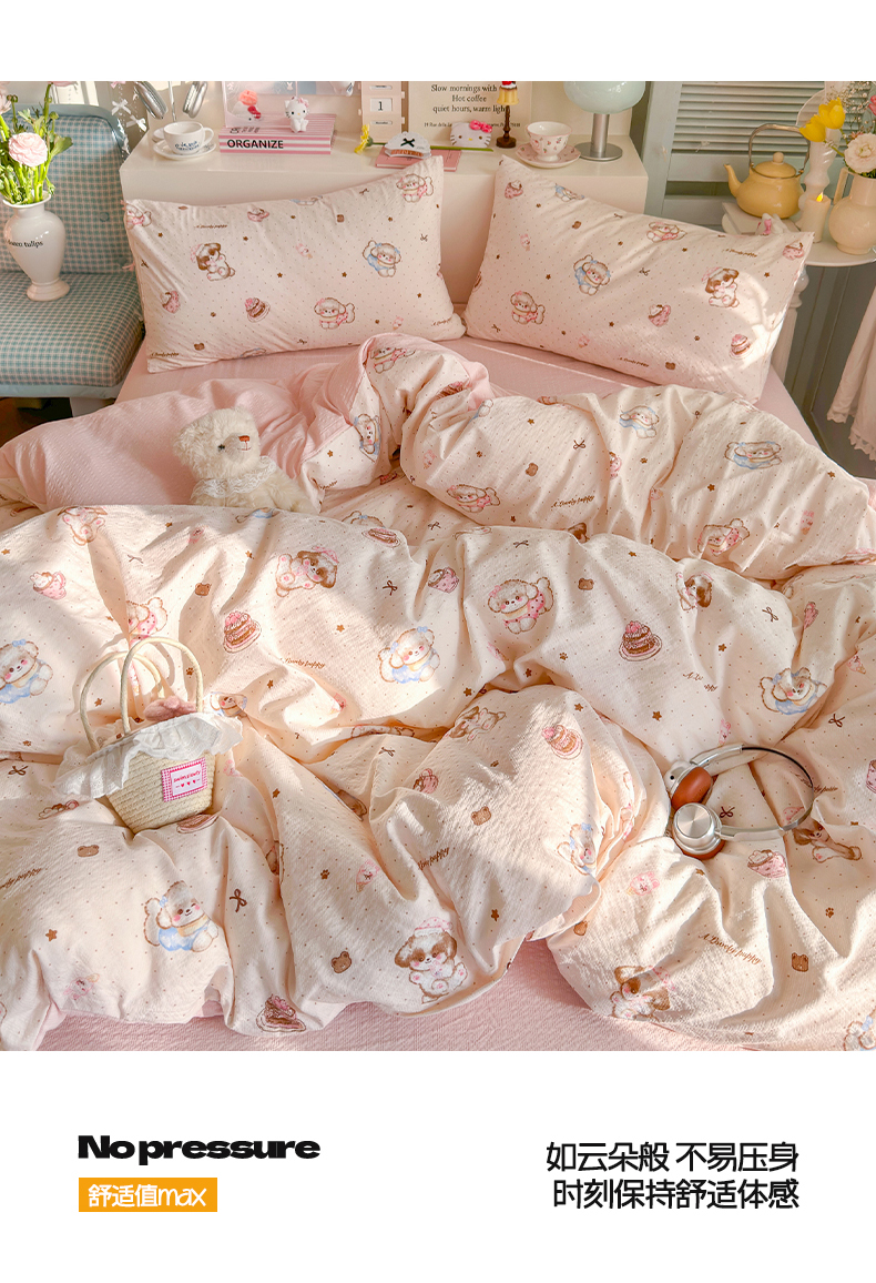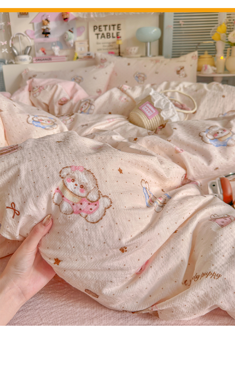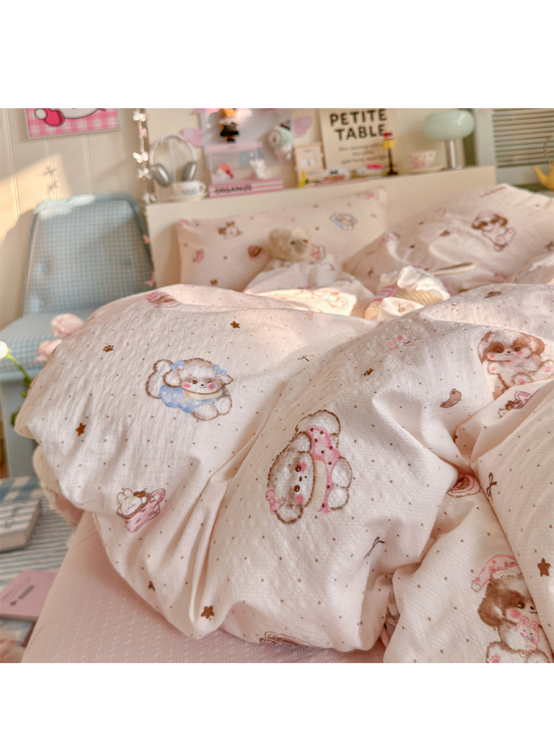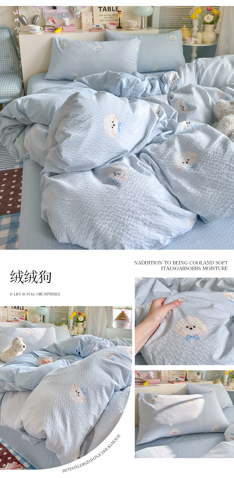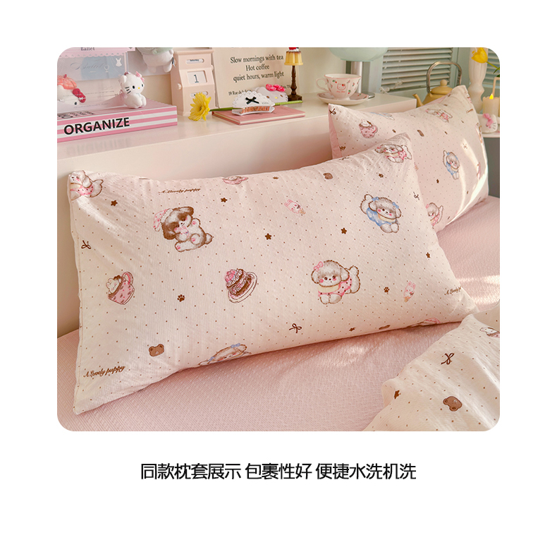 当前位置: 91家纺网 > 商品网购 > 床品套件 > 四件套 > 双层纱四件套 > 铺尚美家纺 2026新款小清新110g高品质直播热卖款A类泡芙棉双层纱四件套 萌萌狗