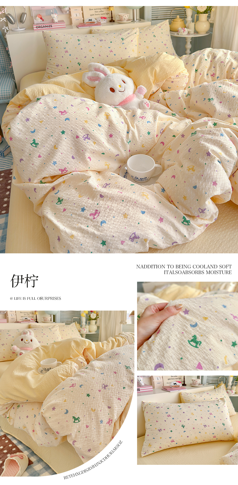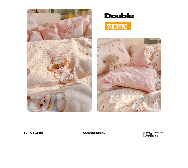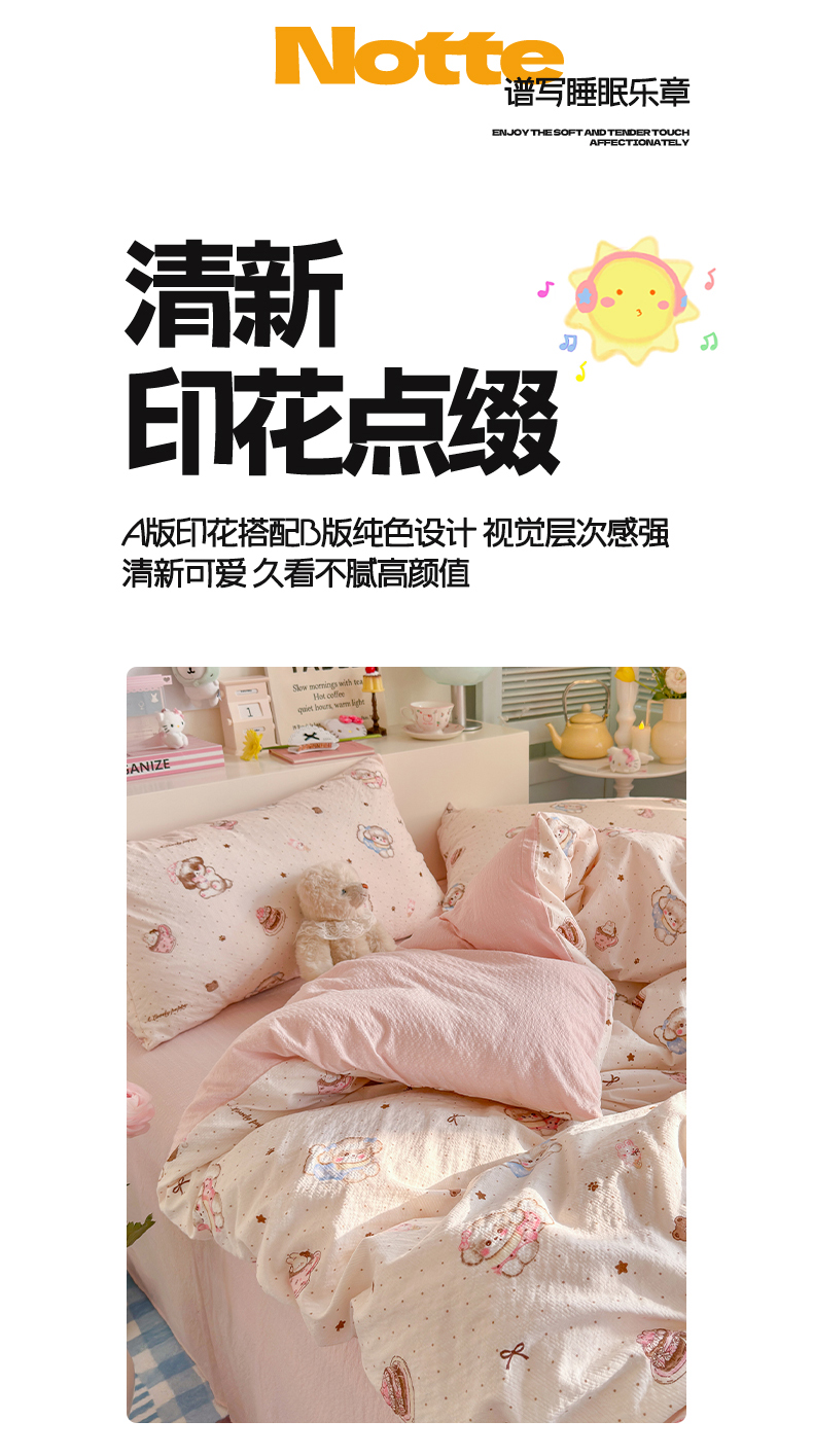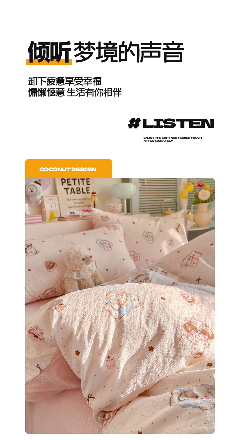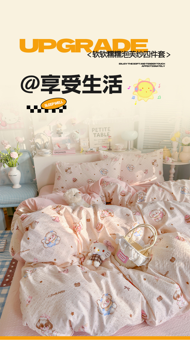 当前位置: 91家纺网 > 商品网购 > 床品套件 > 四件套 > 双层纱四件套 > 铺尚美家纺 2026新款小清新110g高品质直播热卖款A类泡芙棉双层纱四件套 萌萌狗