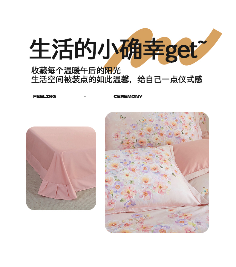 当前位置: 91家纺网 > 商品网购 > 床品套件 > 四件套 > 全棉普通四件套 > 锦彩家居 2026新款全棉纯棉印花60支贡缎新疆长绒棉四件套-山月记系列 浅春