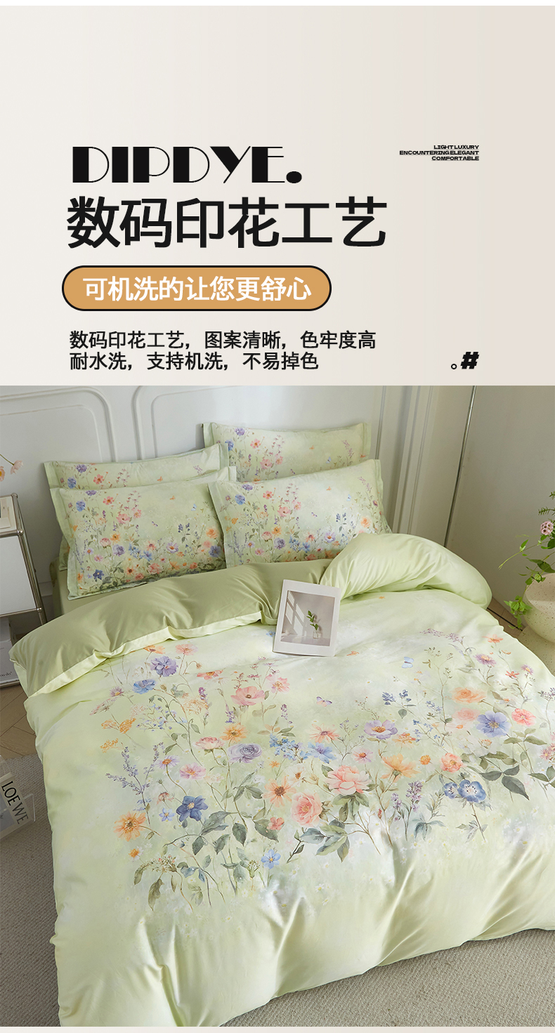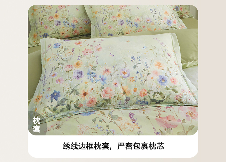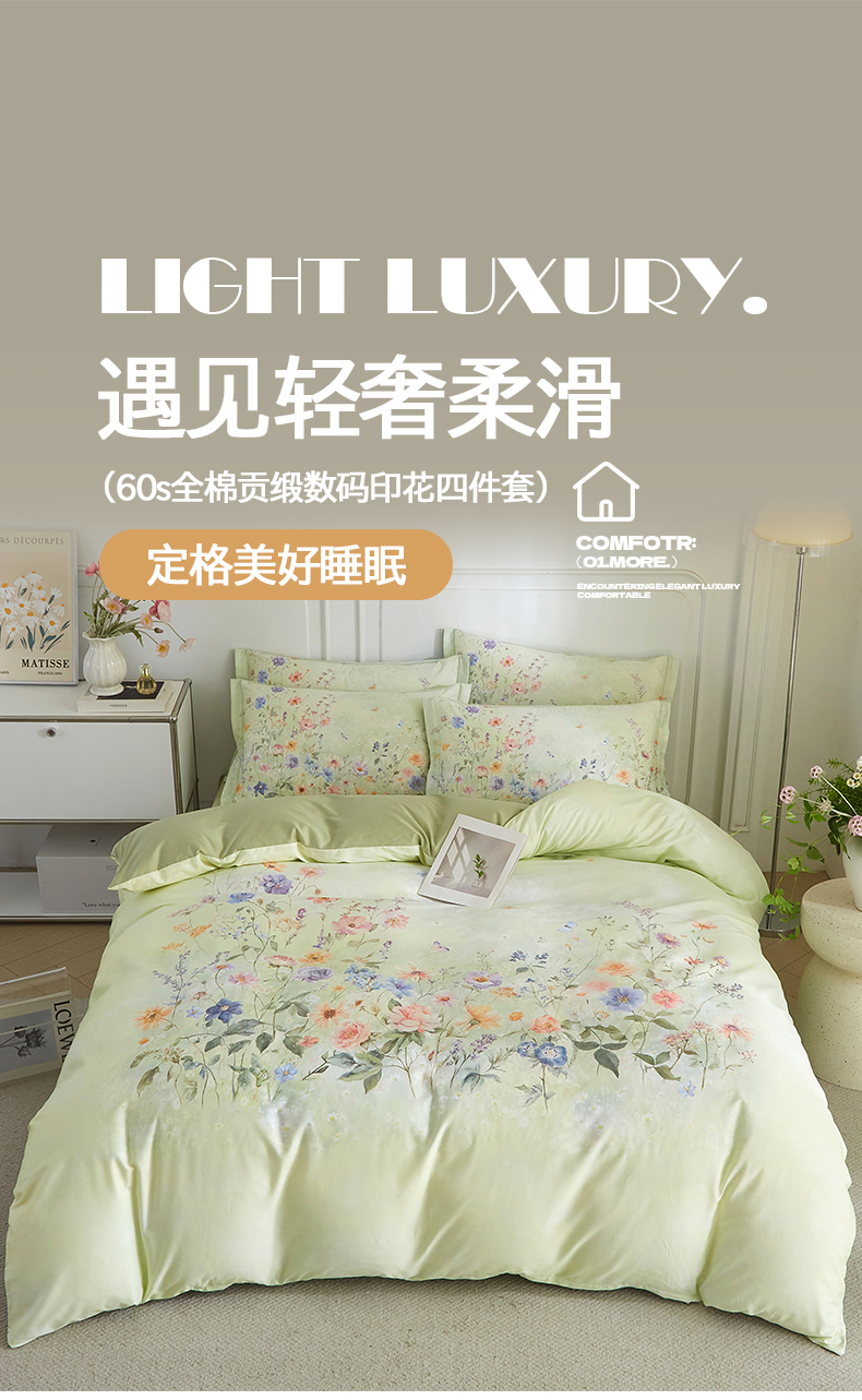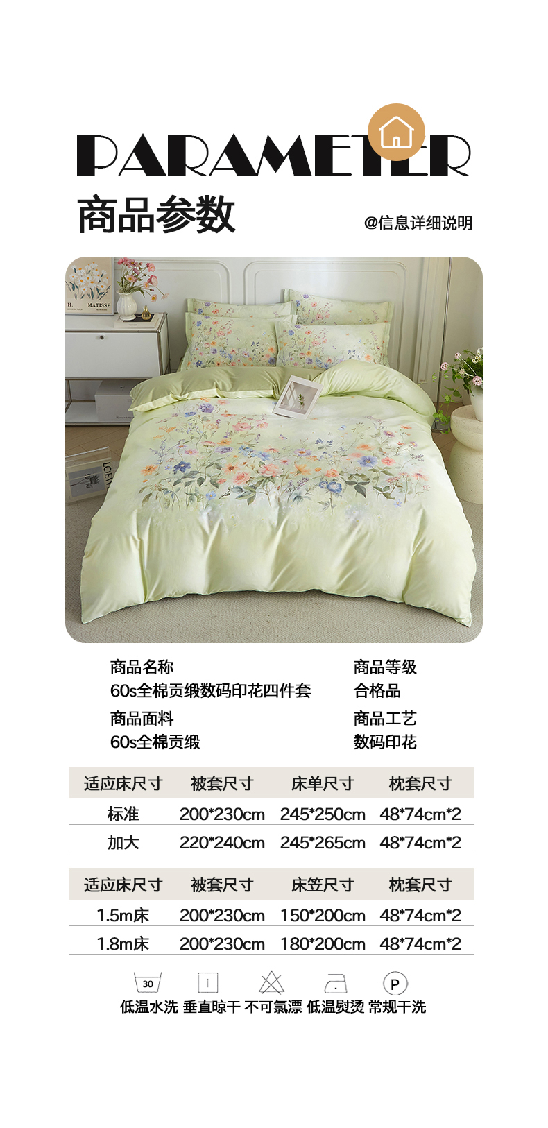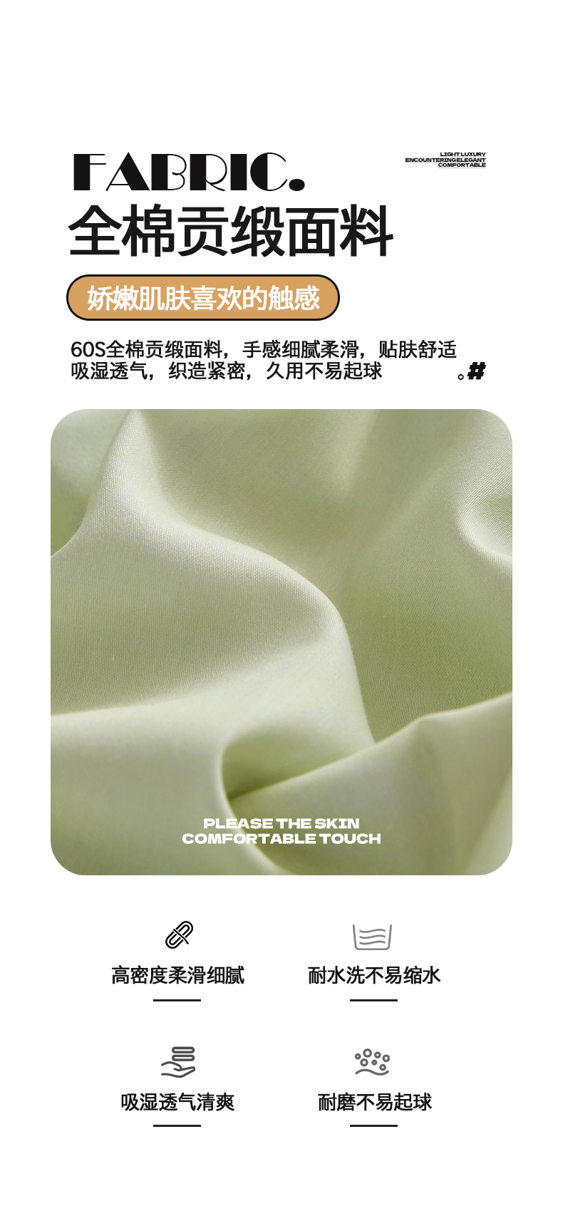 当前位置: 91家纺网 > 商品网购 > 床品套件 > 四件套 > 全棉普通四件套 > 锦彩家居 2026新款全棉纯棉印花60支贡缎新疆长绒棉四件套-山月记系列 烟柳绿