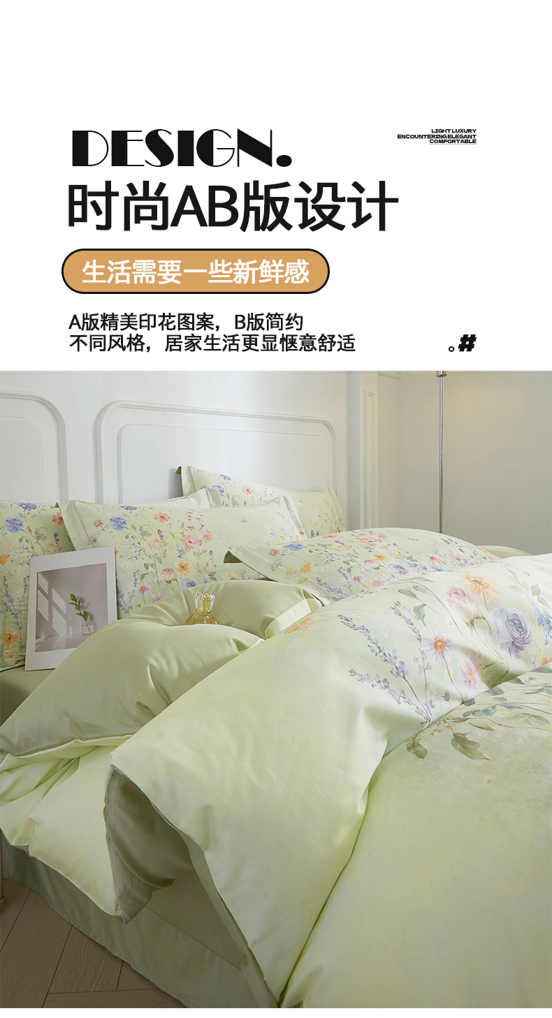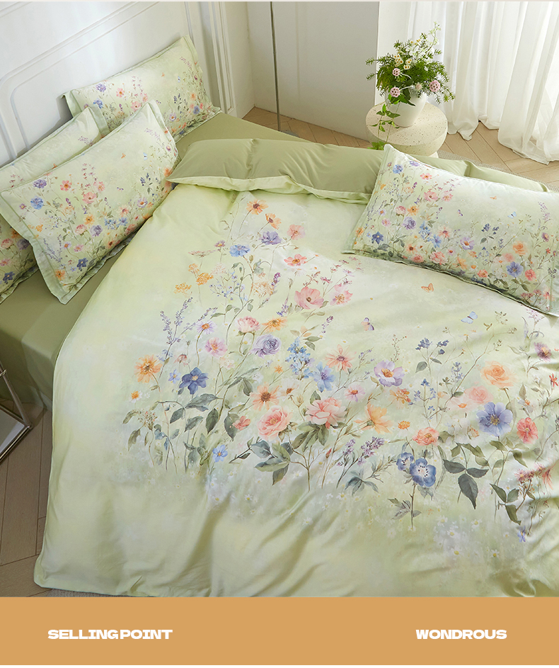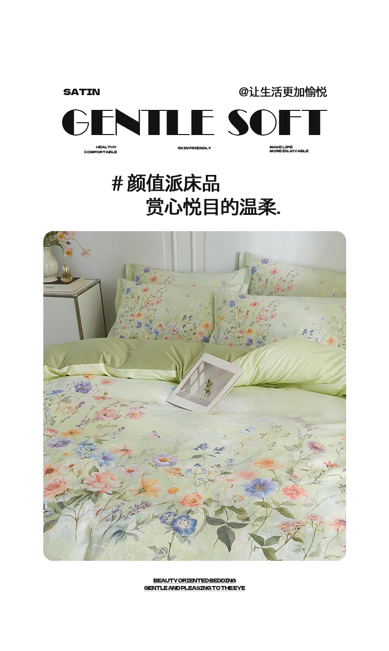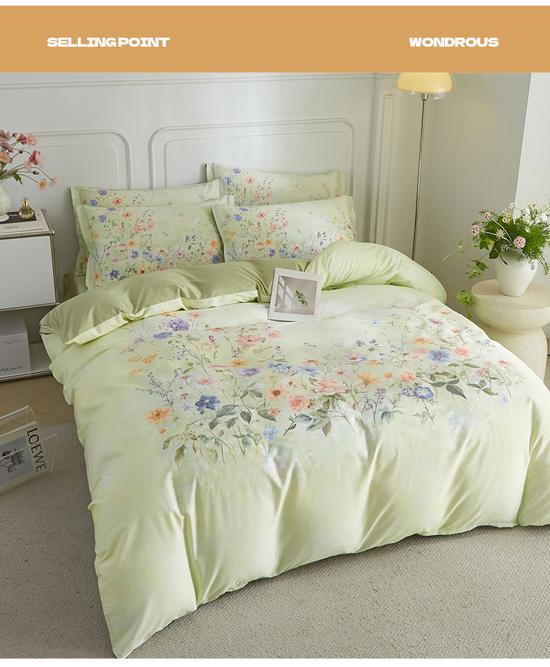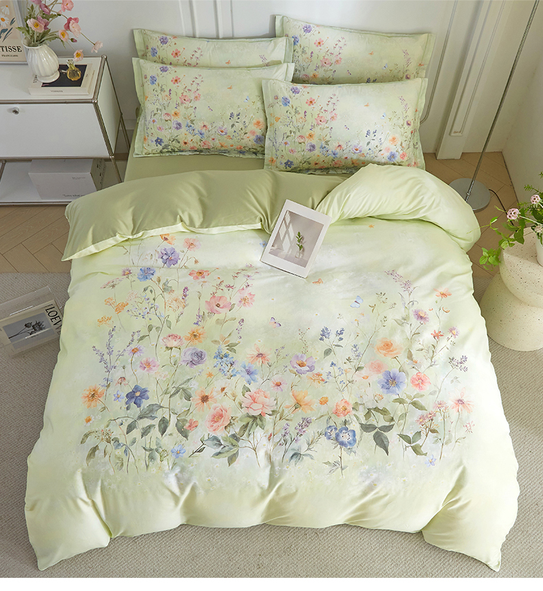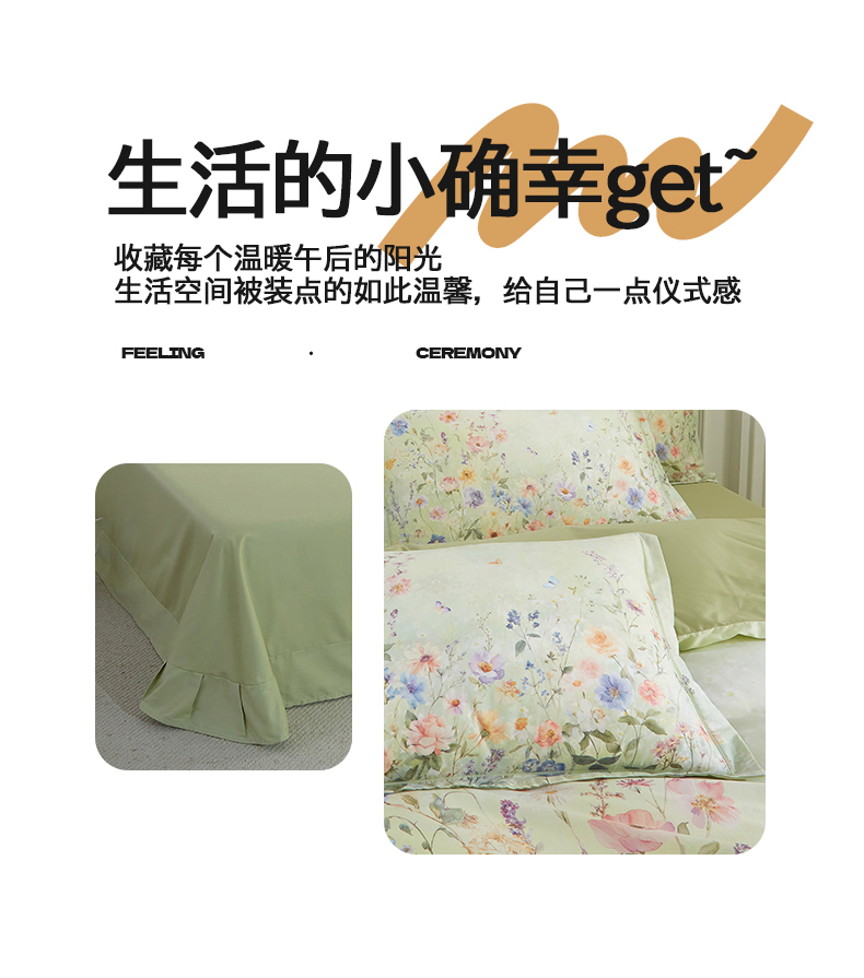 当前位置: 91家纺网 > 商品网购 > 床品套件 > 四件套 > 全棉普通四件套 > 锦彩家居 2026新款全棉纯棉印花60支贡缎新疆长绒棉四件套-山月记系列 烟柳绿