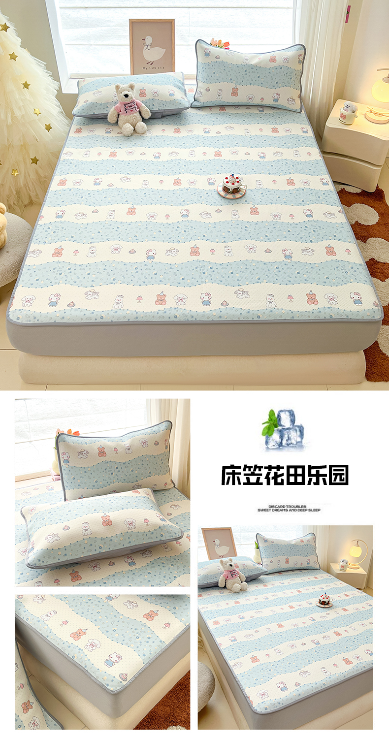 商品名称:川悦生活 2026新款凉豆豆斜纹冰丝凉席单品床笠单件床笠 床笠樱桃小奶喵