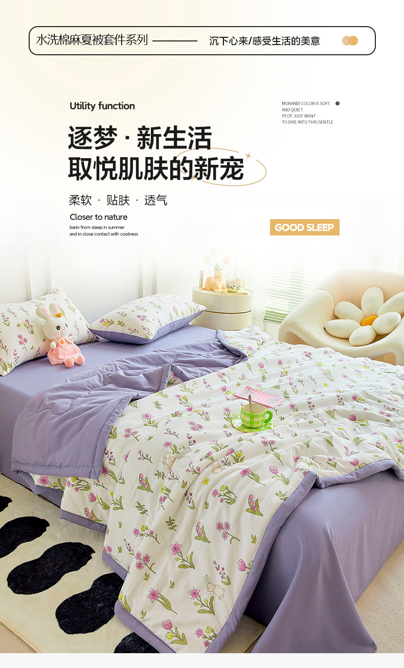 • 91家纺网 家纺一手货源 找家纺 卡斯诺家纺馆 2026新款水洗棉麻双层纱夏被夏凉被空调被 半夏微凉
