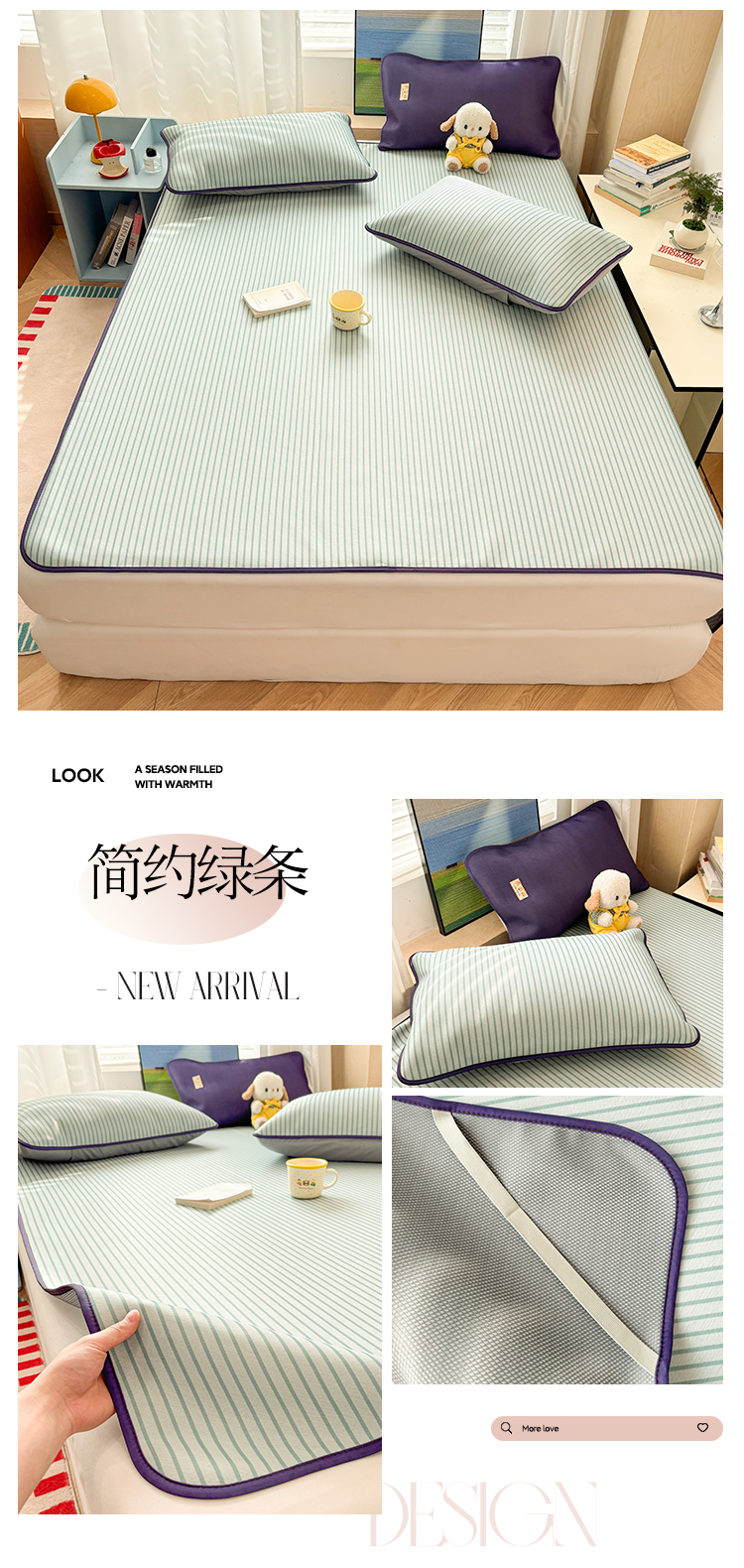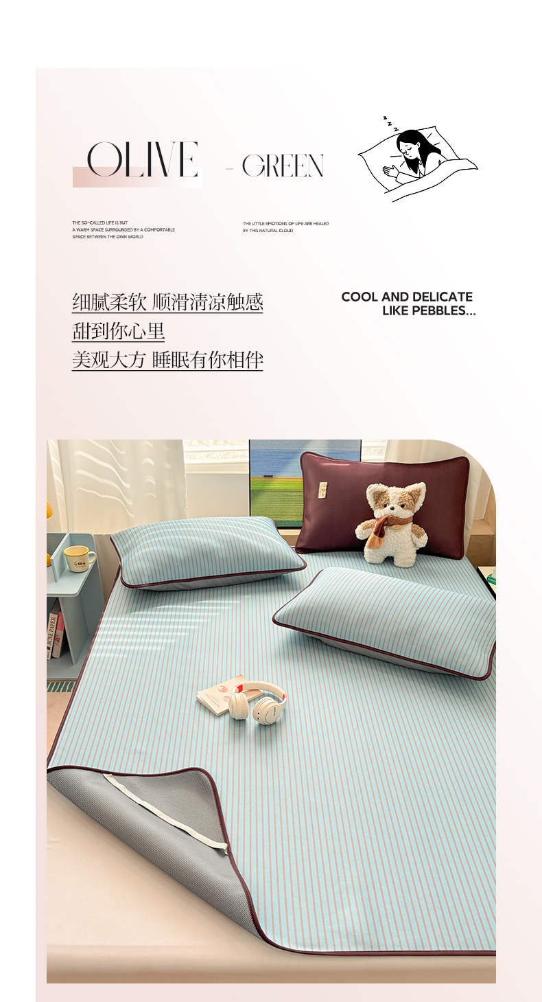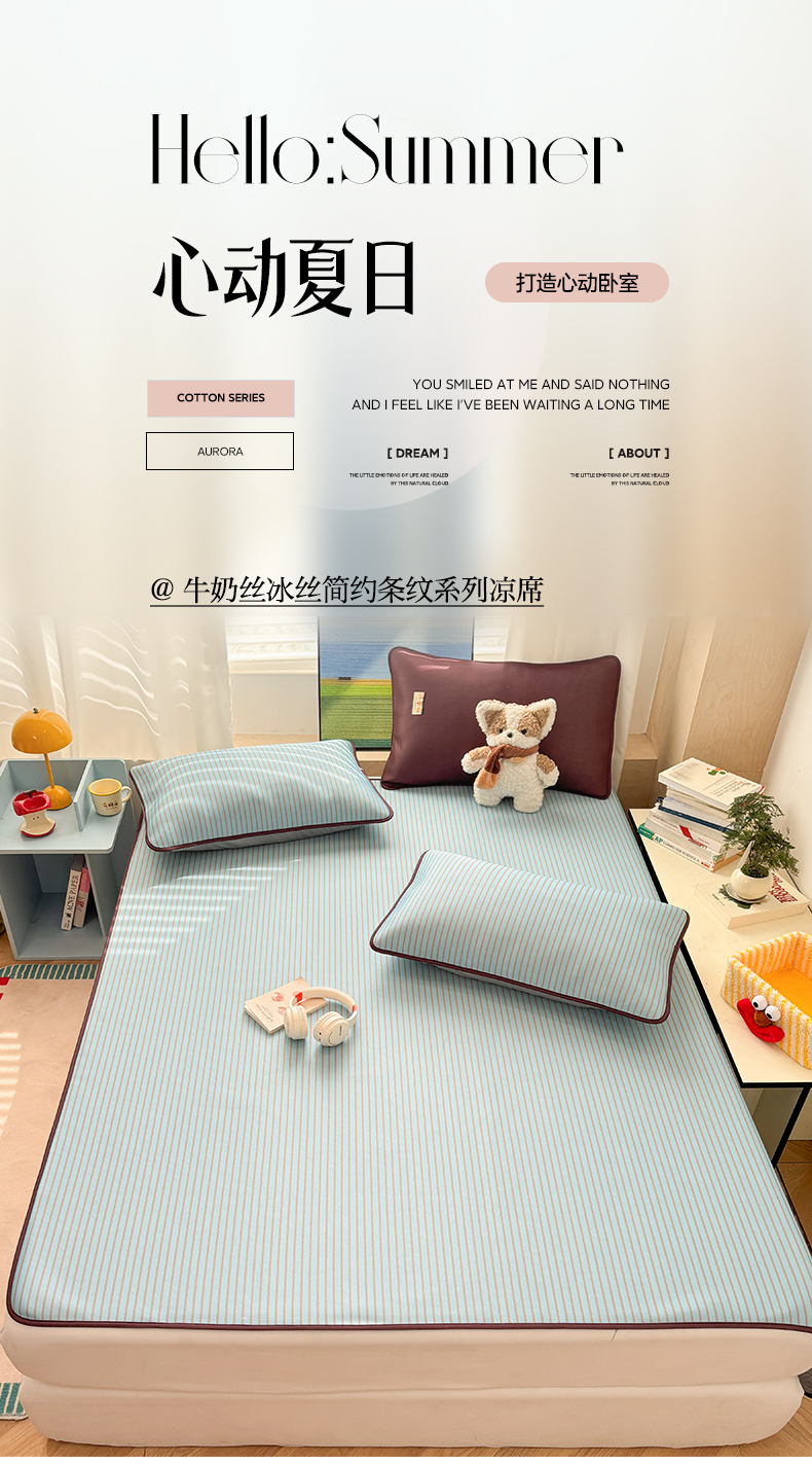 (总)雅居纺家纺 2026新款简约条纹系列凉席牛奶丝三明治底冰丝凉席,简约豆沙条,简约卡其条,简约蓝条,简约亮明黄条,简约绿条