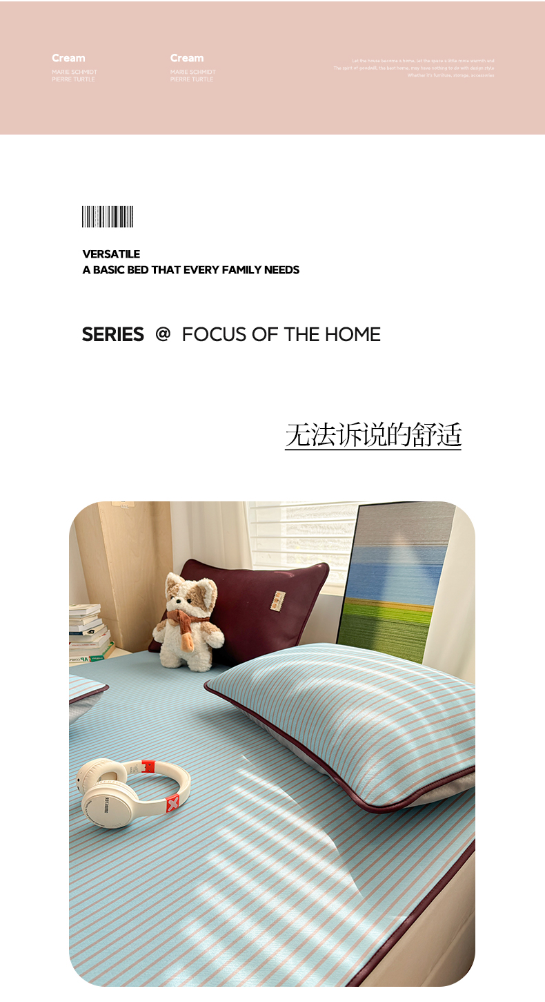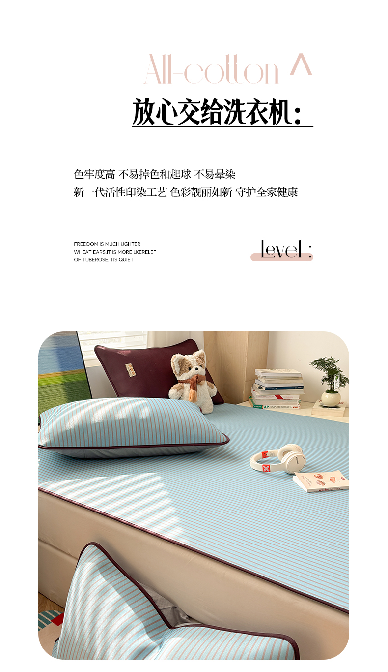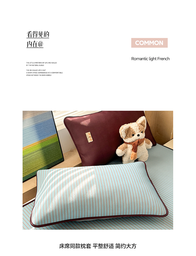 (总)雅居纺家纺 2026新款简约条纹系列凉席牛奶丝三明治底冰丝凉席,简约豆沙条,简约卡其条,简约蓝条,简约亮明黄条,简约绿条