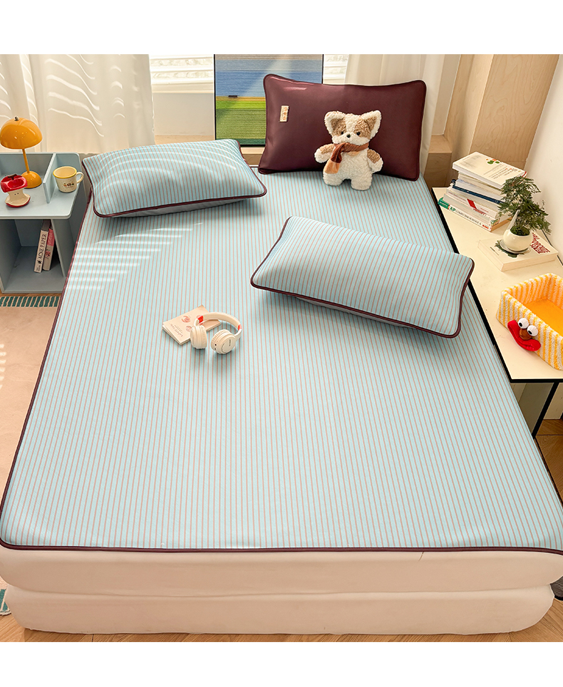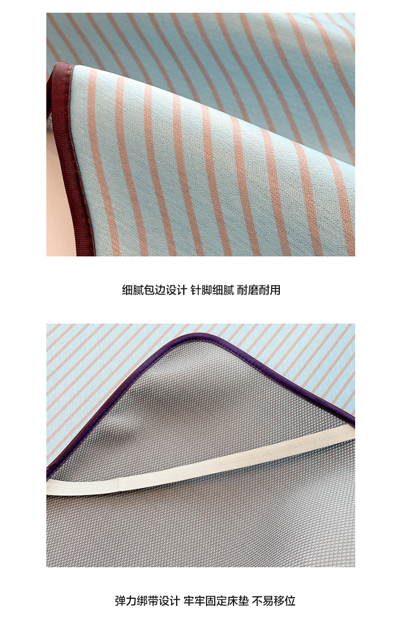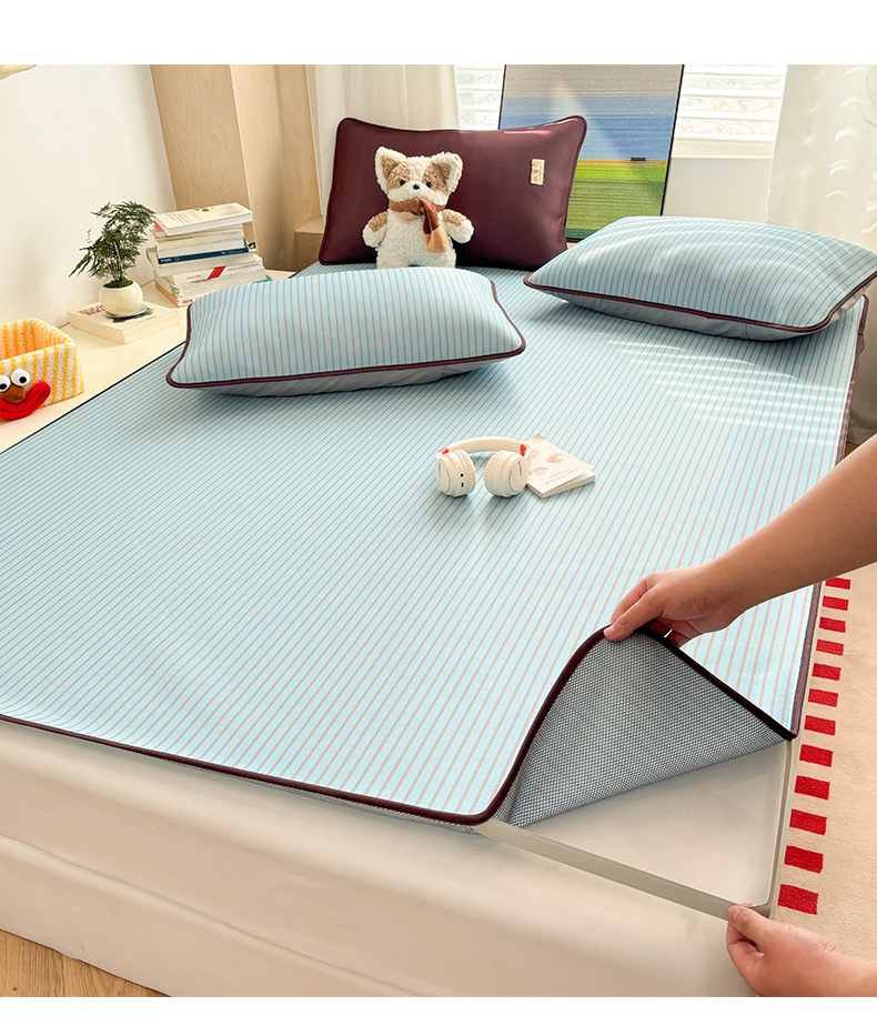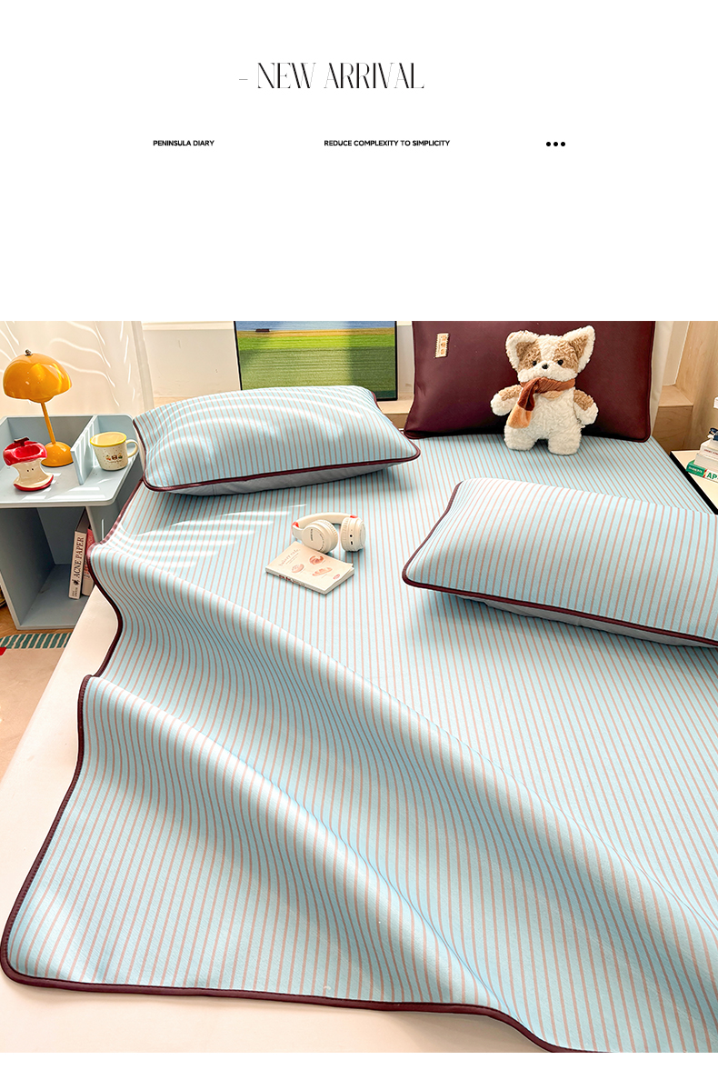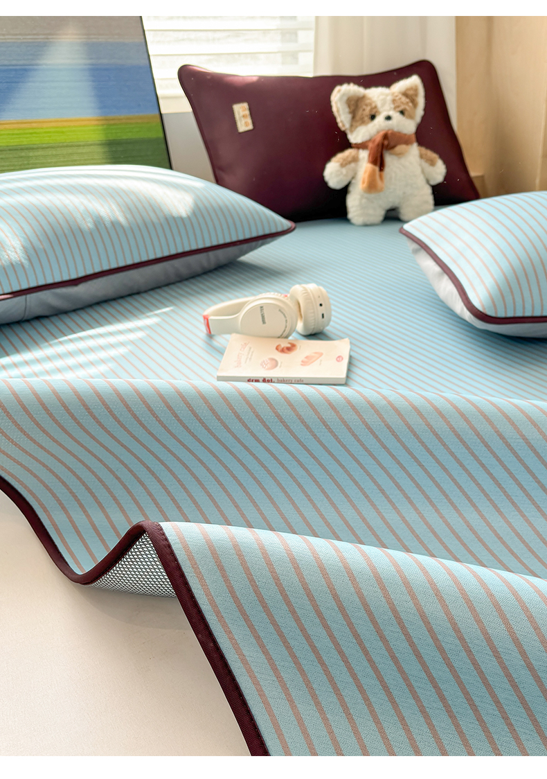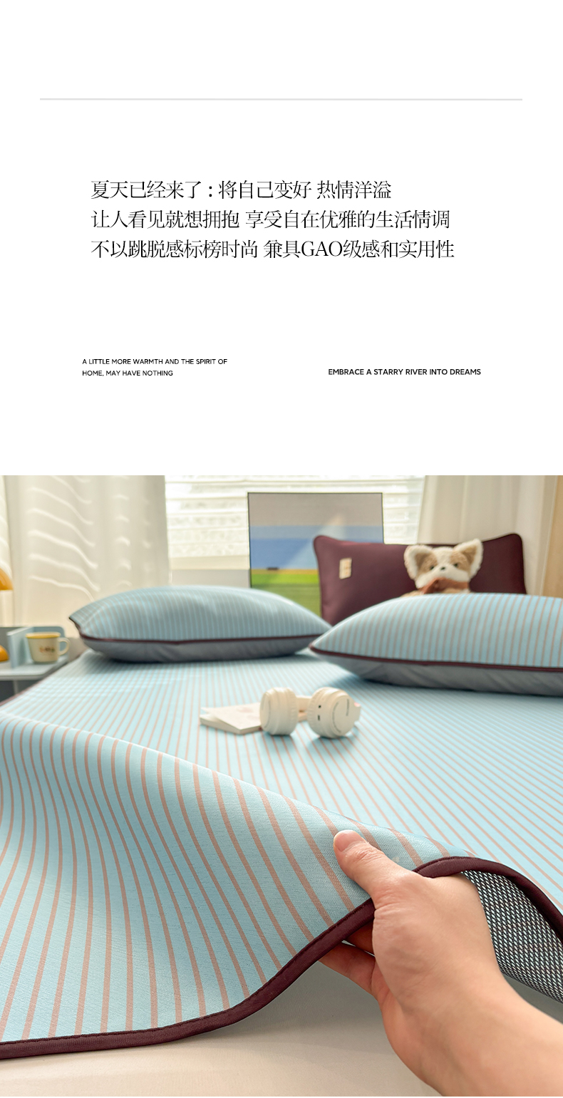 商品名称:雅居纺家纺 2026新款简约条纹系列凉席牛奶丝三明治底冰丝凉席 简约蓝条