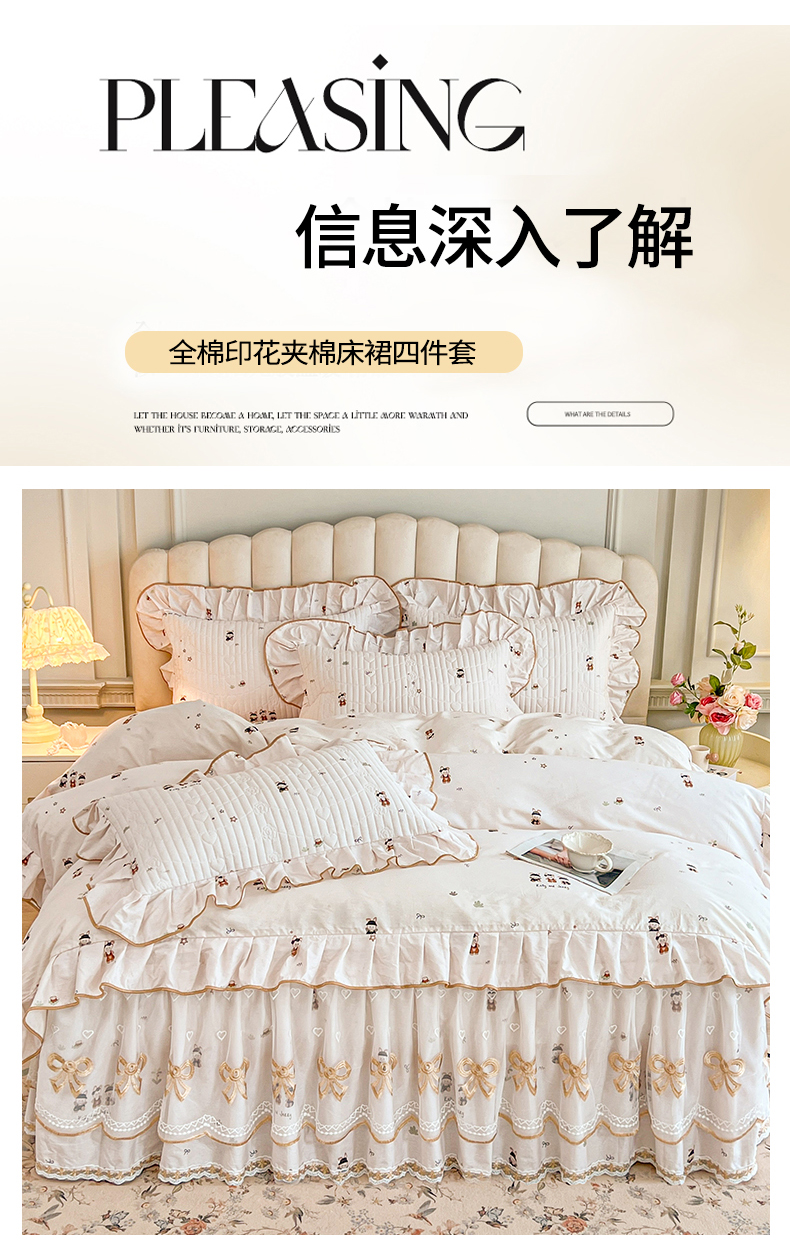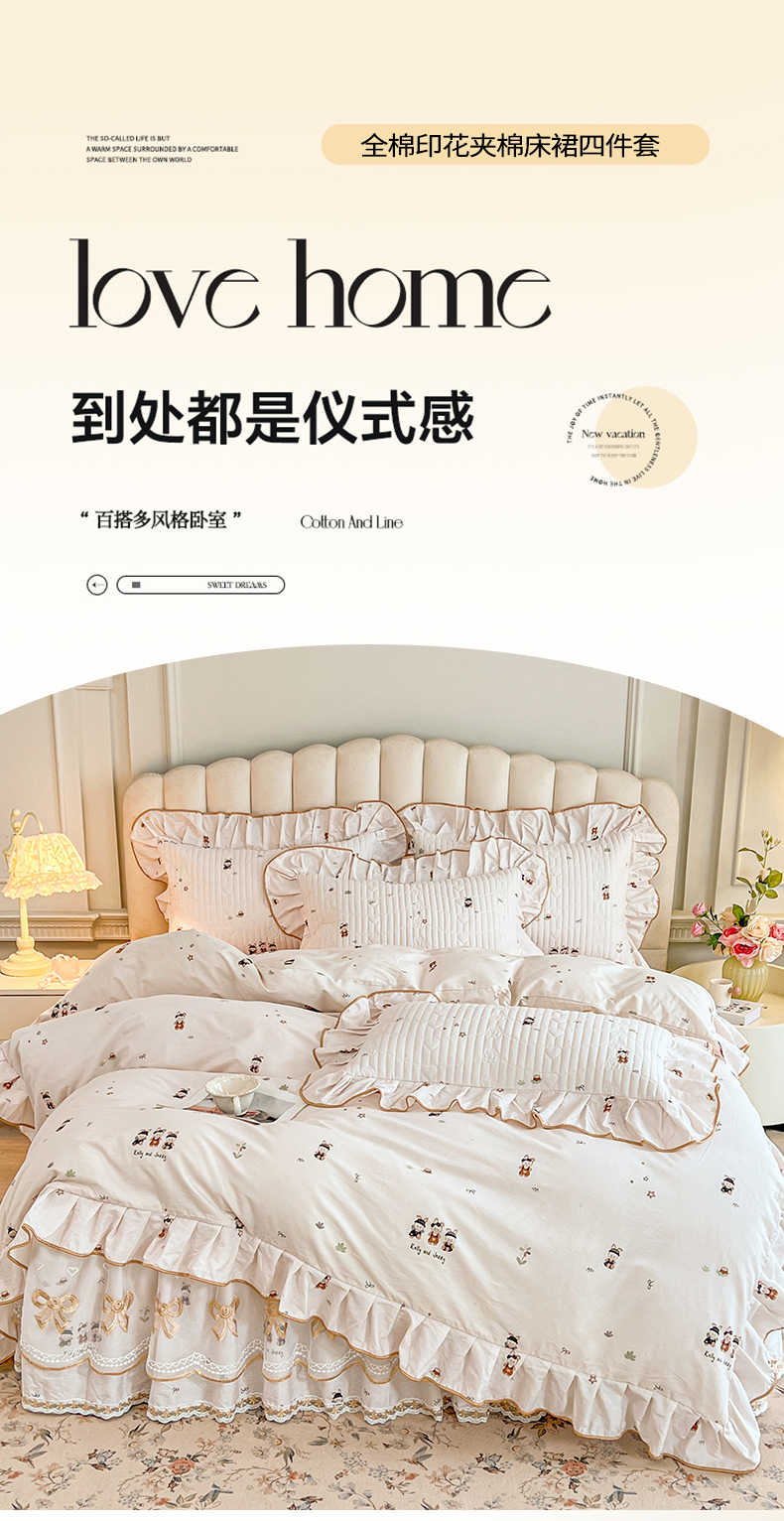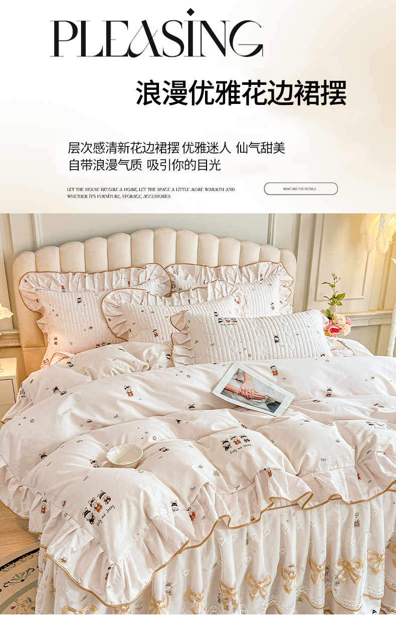 当前位置: 91家纺网 > 商品网购 > 床品套件 > 四件套 > 全棉普通四件套 > 宜凡家纺 2026新款全棉印花公主风夹棉床裙四件套② 森林动物派