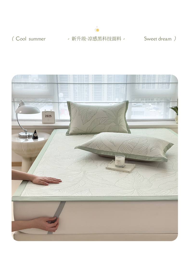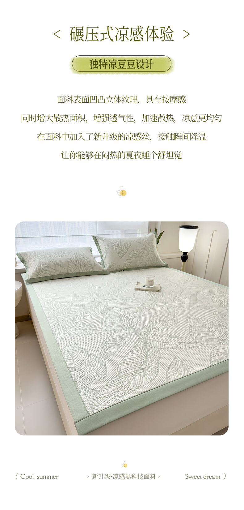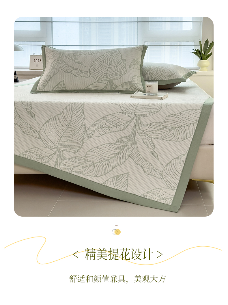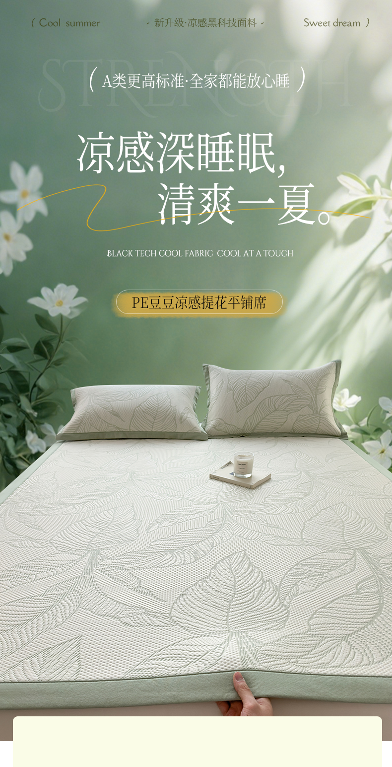 倾慕家纺 2026新款PE时尚风豆豆凉席花卉系列--床席款 大叶绿床席款