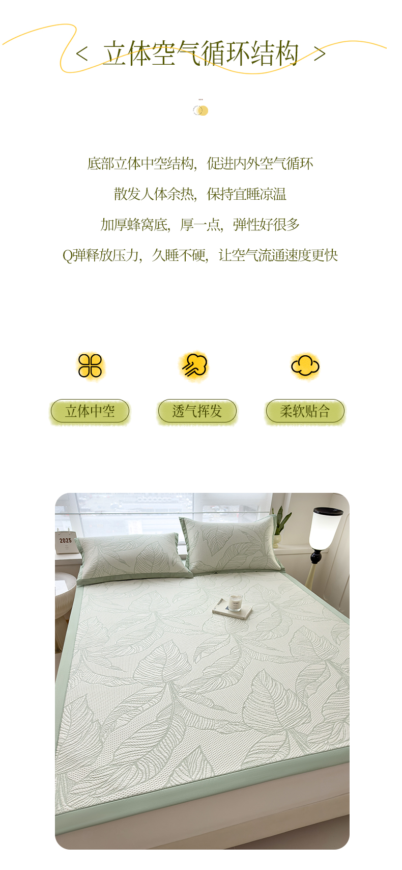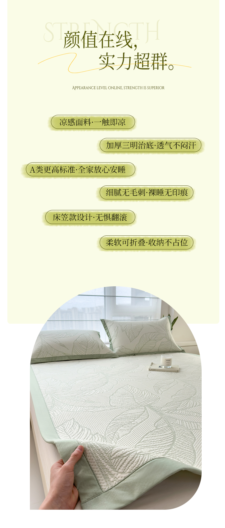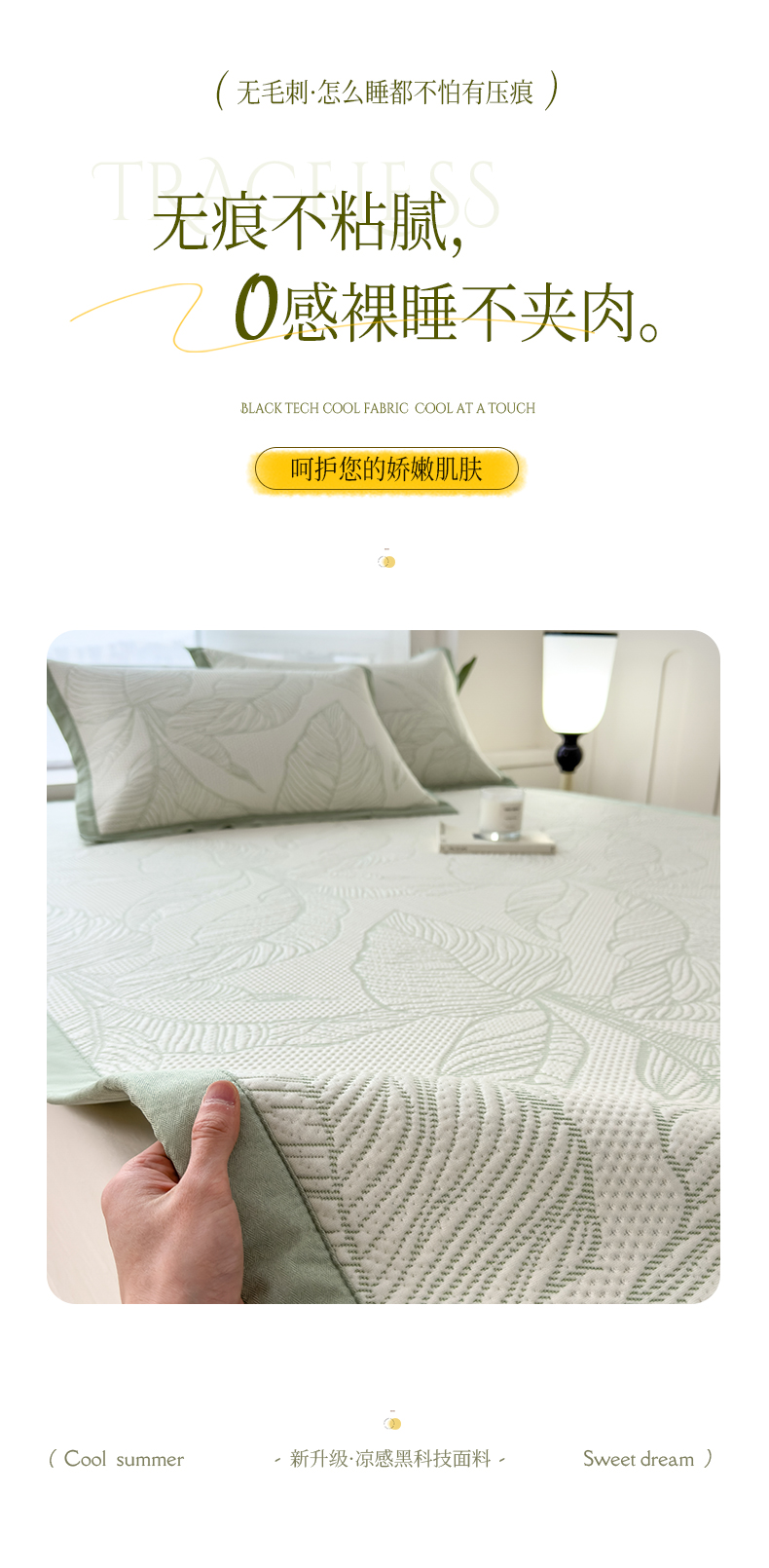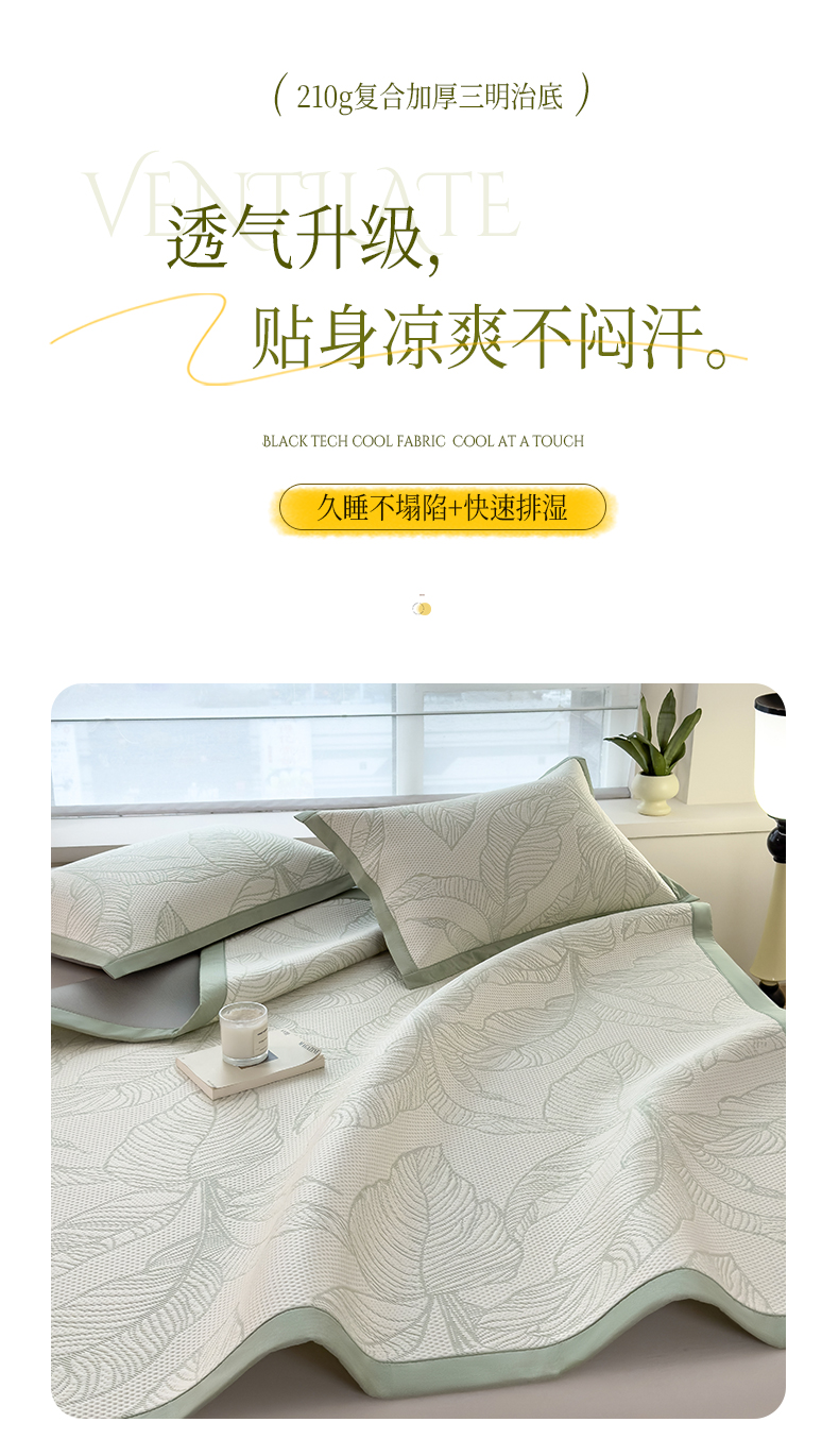 倾慕家纺 2026新款PE时尚风豆豆凉席花卉系列--床席款 大叶绿床席款