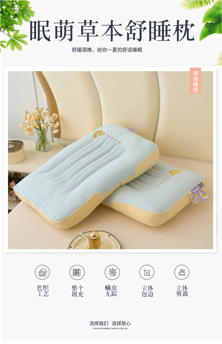 当前位置: 91家纺网 > 商品网购 > 枕头/枕芯/保健枕/颈椎枕 > 枕头枕芯 > 梦叶草 2026新款新品透气针织棉萌眠本草决明子护颈枕头助睡眠枕芯 萌眠本草决明子护颈枕-蓝色