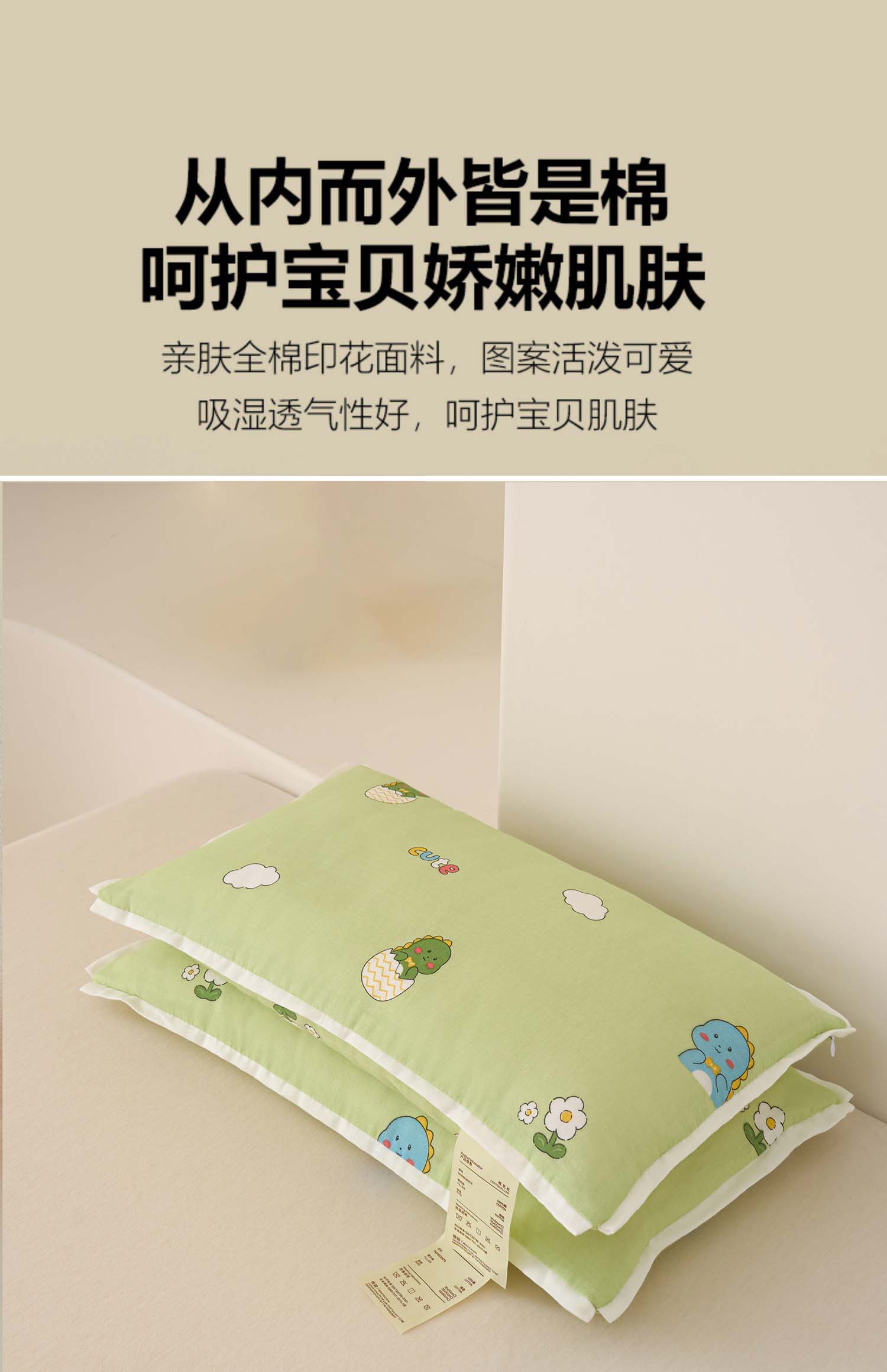 商品名称:梦叶草 2026新款A类卡通纯棉棉花儿童枕枕头枕芯 绿色恐龙