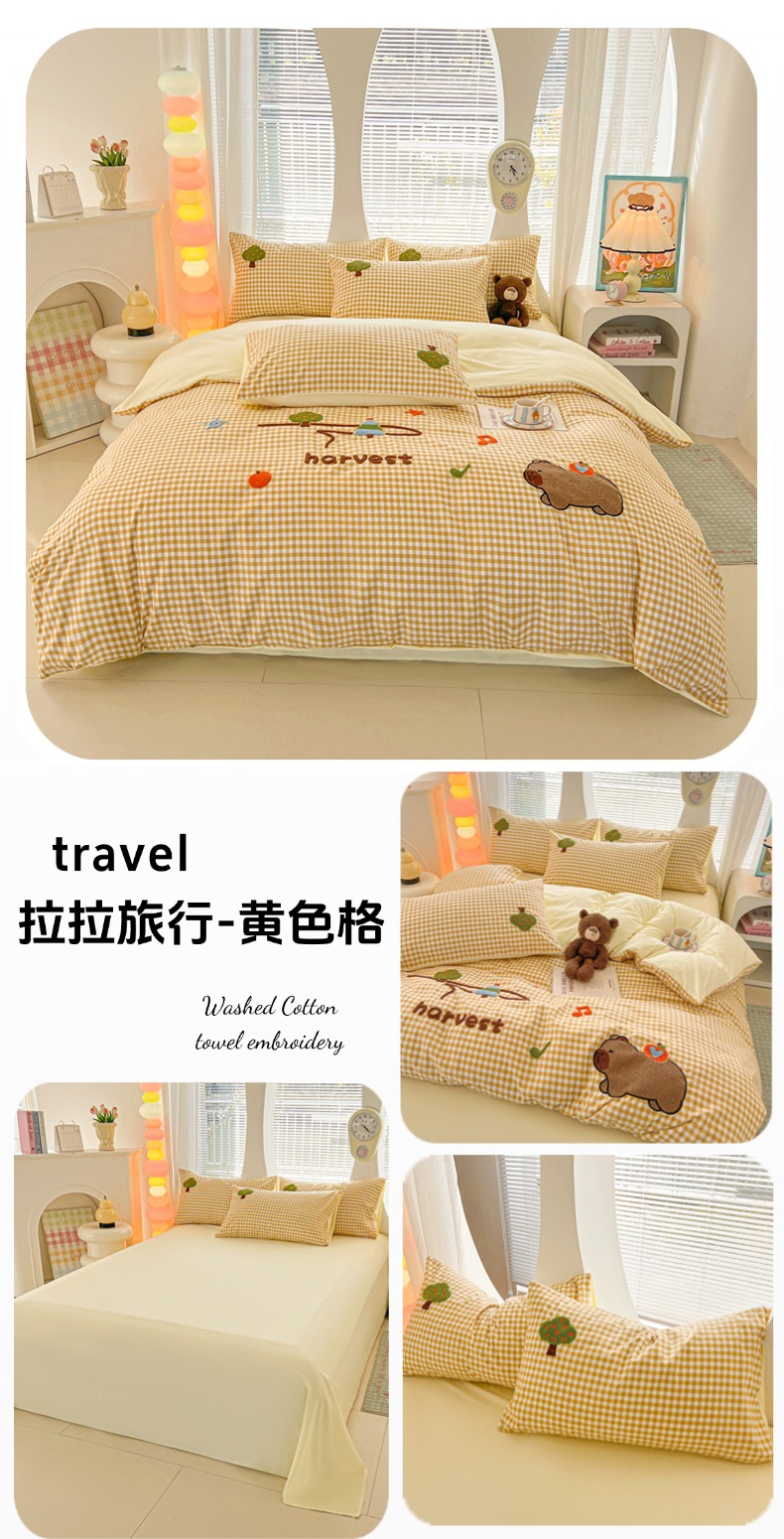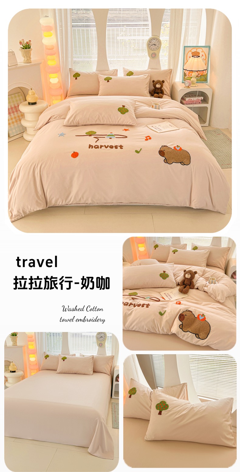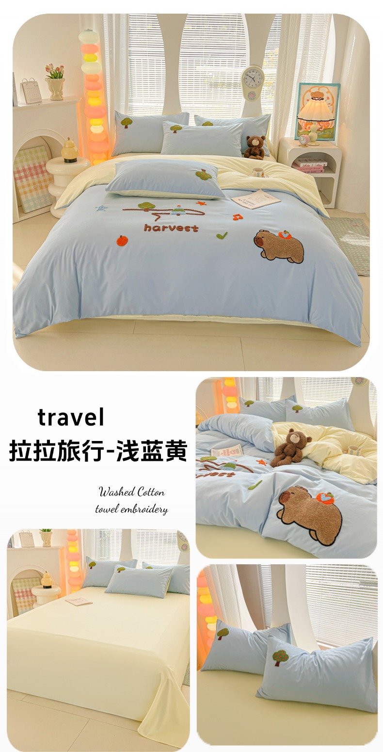 (总)欧妮家纺 2025新款水洗棉毛巾绣床单被套四件套宿舍床上三件套-拉拉旅行系列
