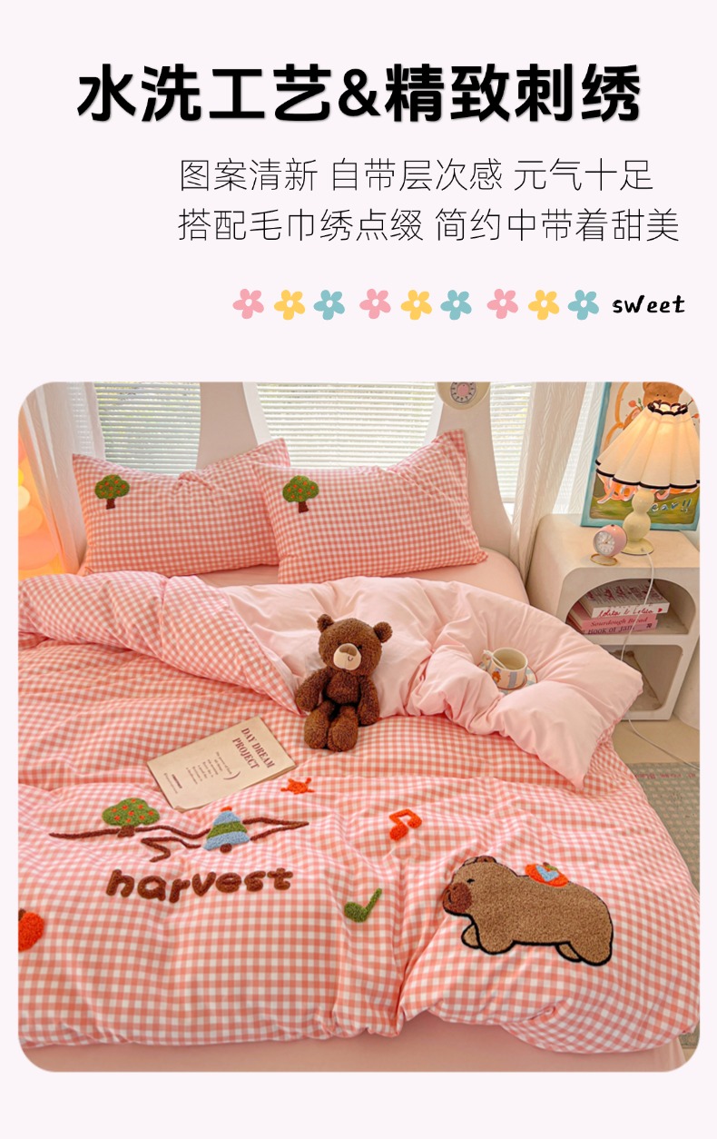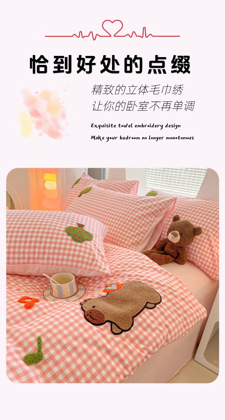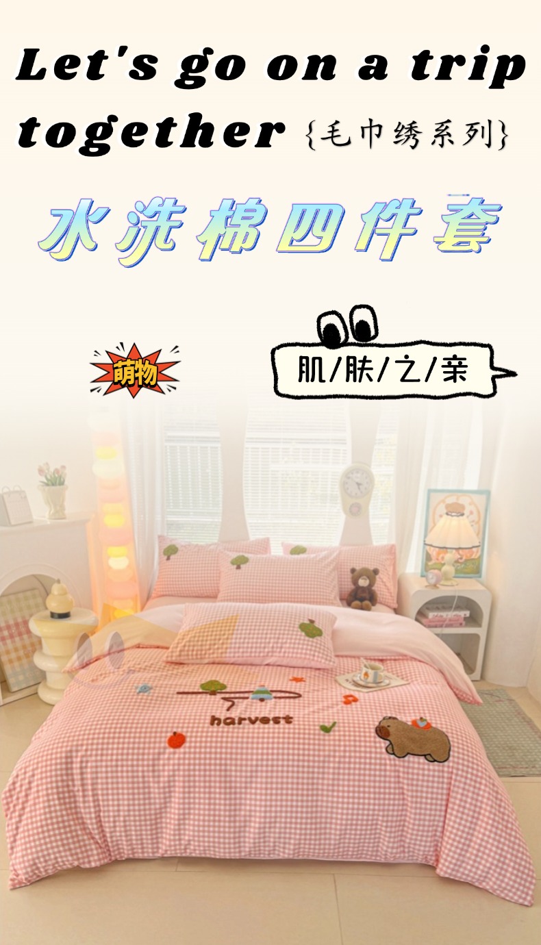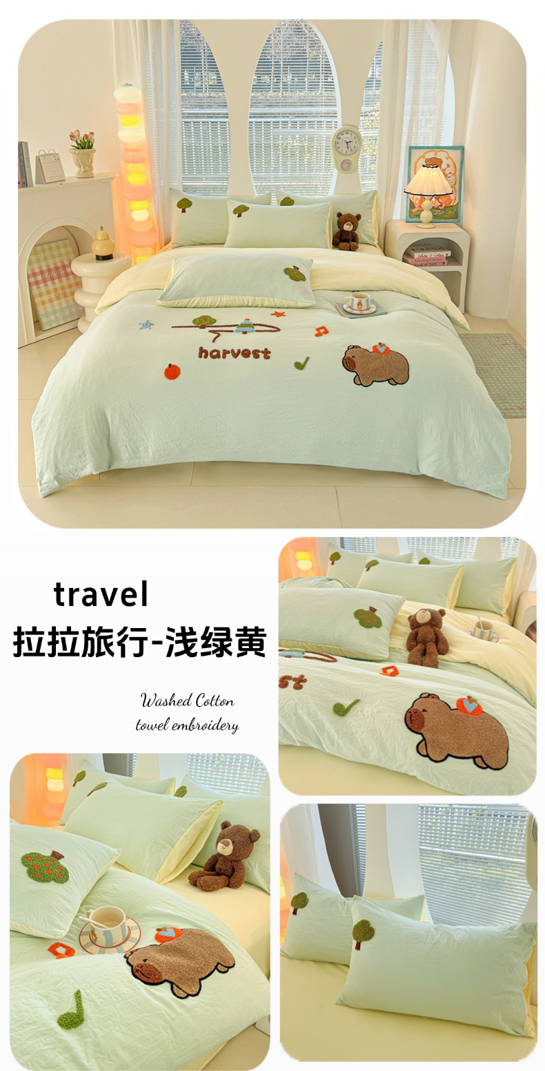 (总)欧妮家纺 2025新款水洗棉毛巾绣床单被套四件套宿舍床上三件套-拉拉旅行系列
