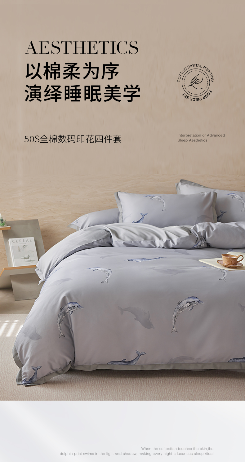 当前位置: 91家纺网 > 商品网购 > 床品套件 > 四件套 > 全棉活性四件套 > 千朵森 2026新款海洋风全棉纯棉50S数码印花拼角四件套 HY企鹅奇缘