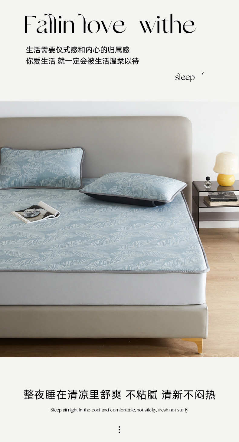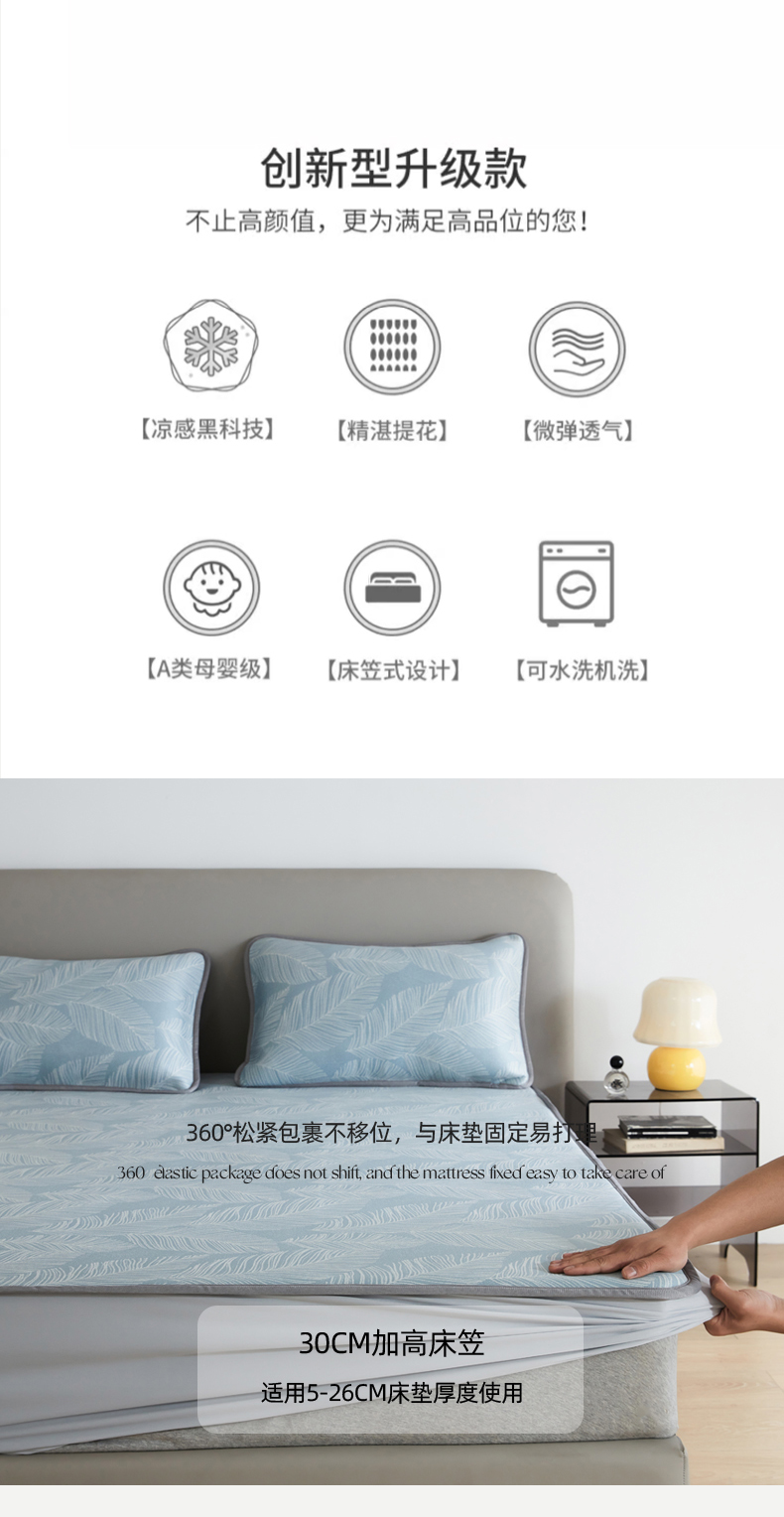 (总)千朵森 2026新款A类抗菌冰岛冰感丝床笠款凉席三件套 风格二,冰岛-暮夜蓝,冰岛-浅茶杏,冰岛-晴空蓝,冰岛-山茶灰,冰岛-山梗灰