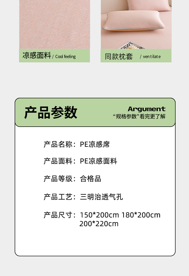 商品名称:金艾草 2026新款PE冰豆豆席凉感凉席单件席子平铺款 豆豆凉席-粉色