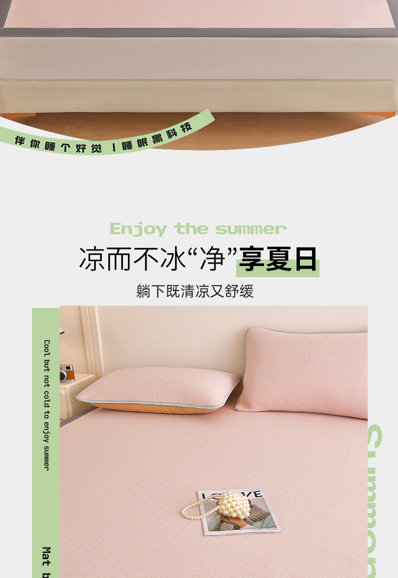 (总)金艾草 2026春夏新款PE凉感床裙款凉席席子空调软席,清新-粉色,清新-灰色,清新-蓝色,清新-绿色