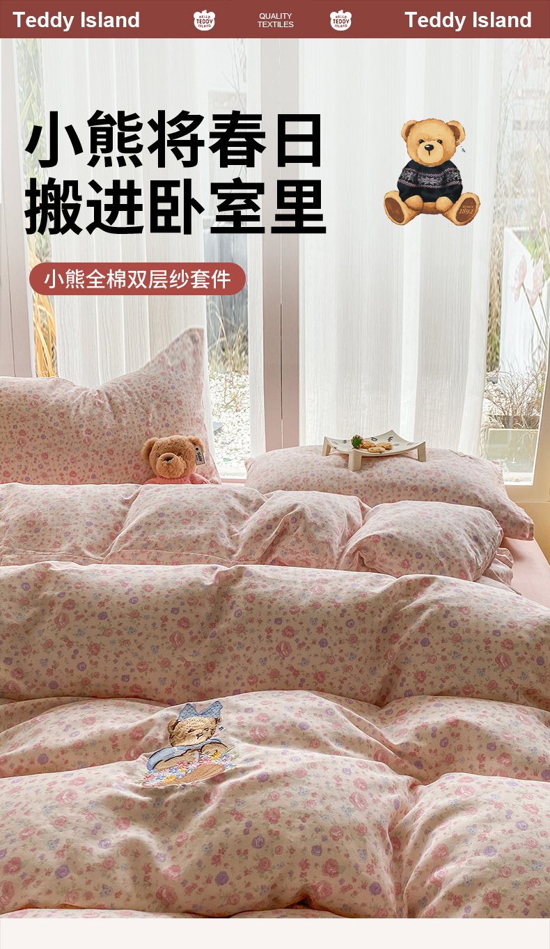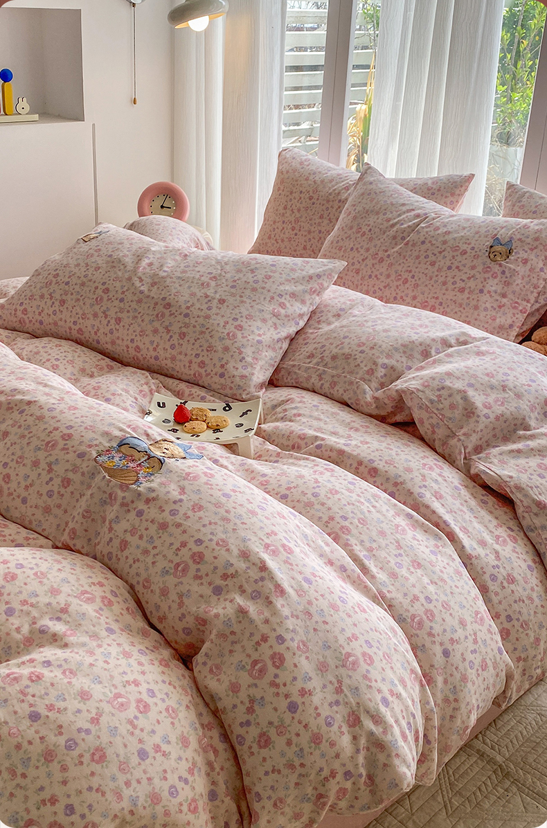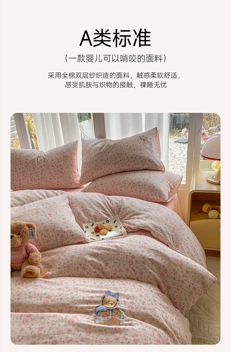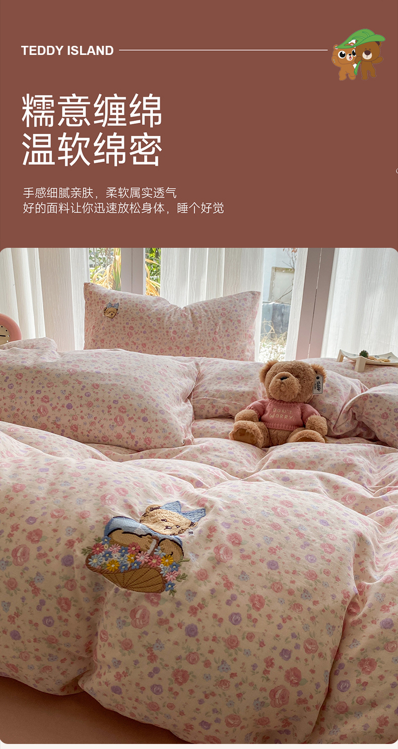 当前位置: 91家纺网 > 商品网购 > 床品套件 > 四件套 > 全棉普通四件套 > 尚品本色 2026新款全棉纯棉双层纱印花刺绣四件套 花镜花开