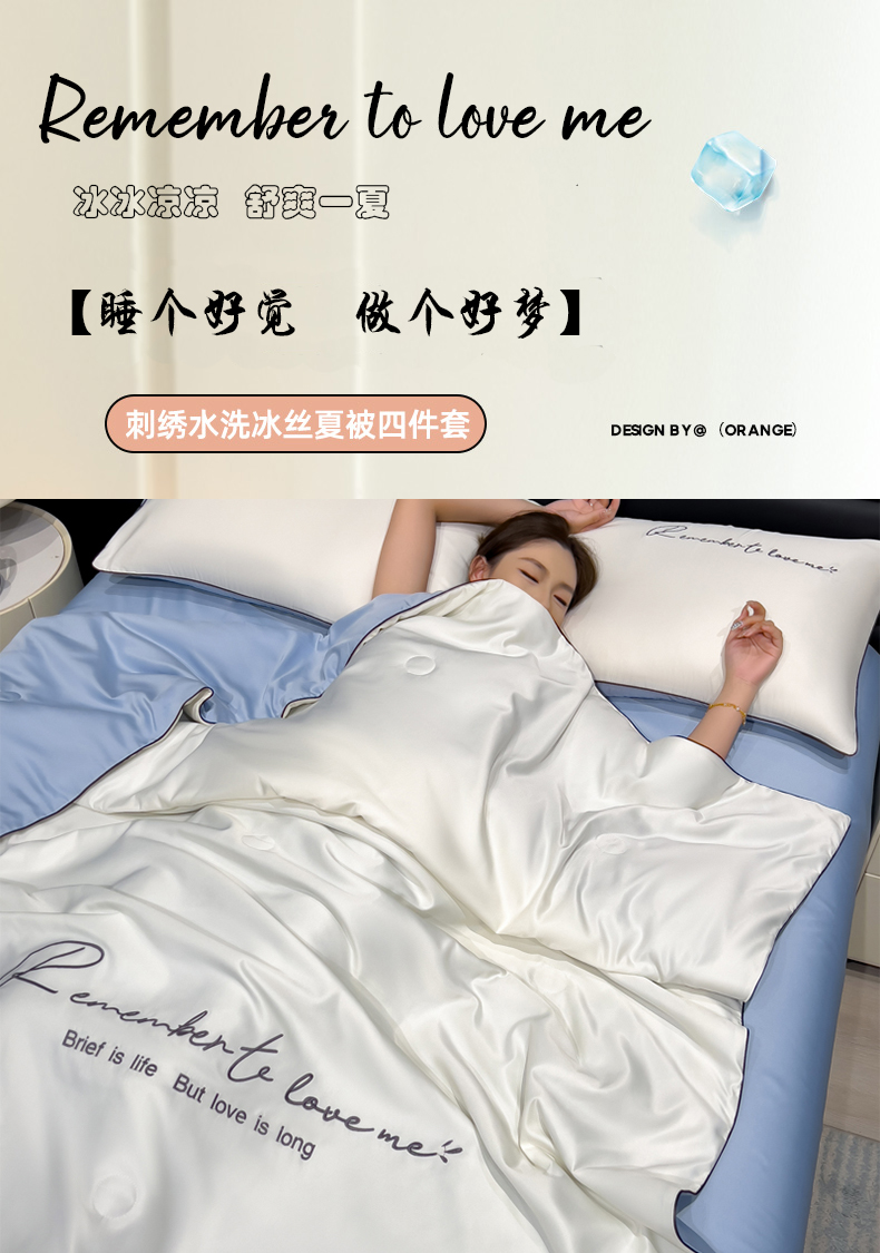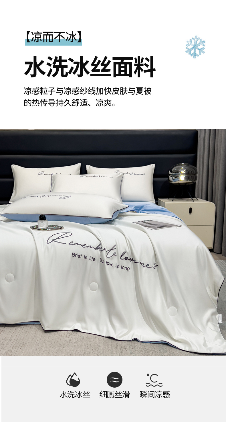 • 91家纺网 家纺一手货源 找家纺 云恋家纺 2026新款轻奢高级感水洗冰丝刺绣夏凉被凉感可裸睡空调被四件套学生薄款被-一生所爱系列 一生所爱-本白+风铃蓝